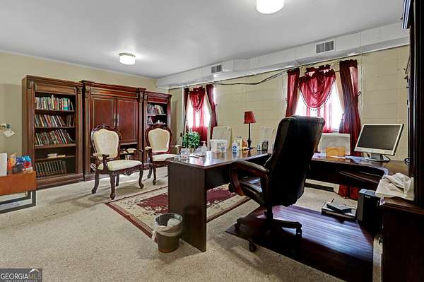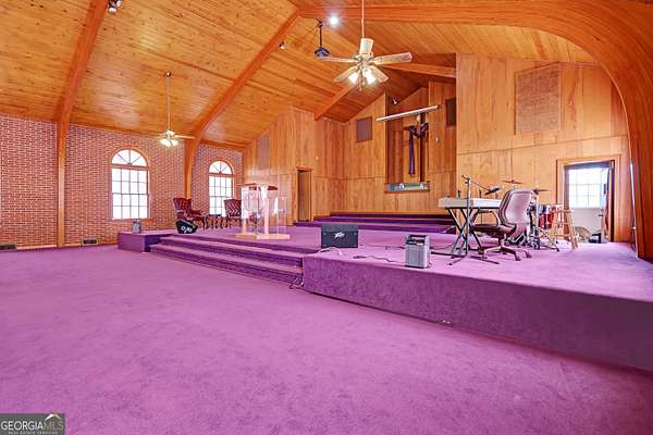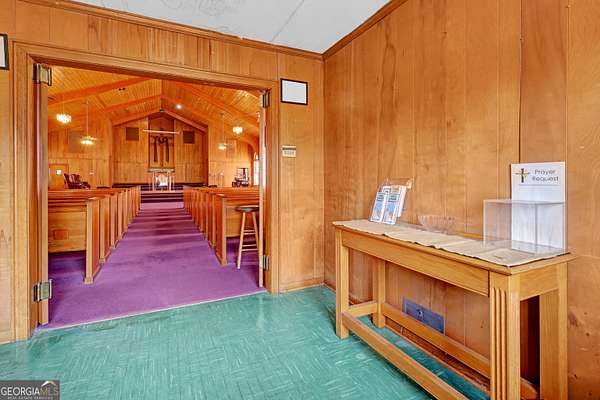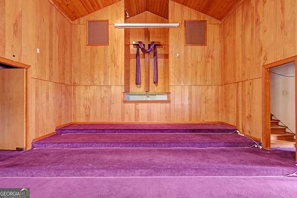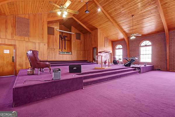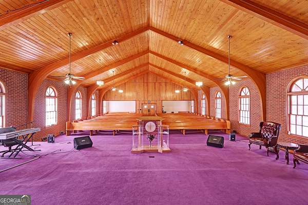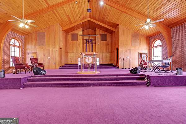 Situated in the heart of Griffin, this well-established church property offers a warm and inviting space designed to bring people together. The main sanctuary features soaring cathedral ceilings highlighted by beautifully stained wooden arches, creating an inspiring setting for worship, performances, and community gatherings. A spacious pulpit and elevated choir loft provide excellent visibility and acoustics for services, events, and presentations. The lower level expands the property's versatility with 13 classrooms, ideal for youth programs, education, outreach initiatives, meetings, or support groups. Additional features include a kitchen, work room, and multiple bathrooms, allowing the space to comfortably support fellowship meals, workshops, and large community activities. Conveniently located near downtown Griffin, this property offers easy access and a strong neighborhood presence. Whether serving as a place of worship, community hub, nonprofit center, or outreach facility, this property provides a meaningful opportunity to continue a legacy of connection, service, and community engagement.