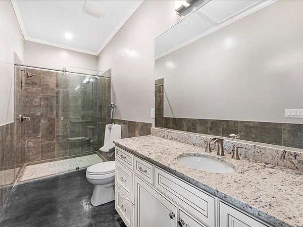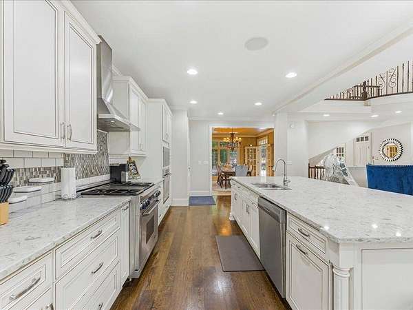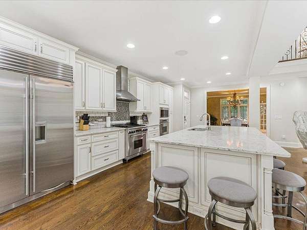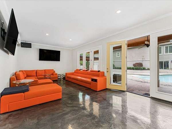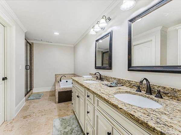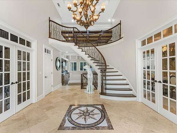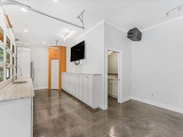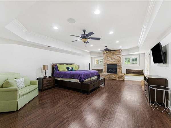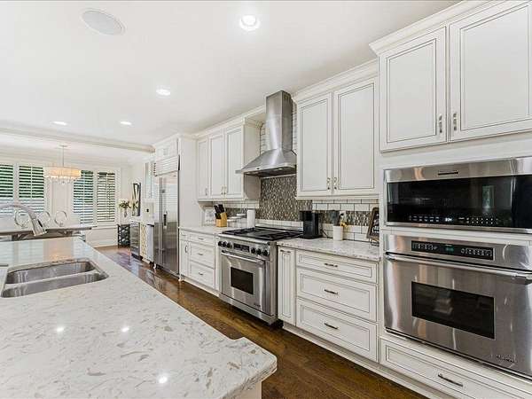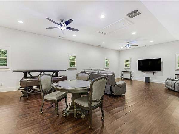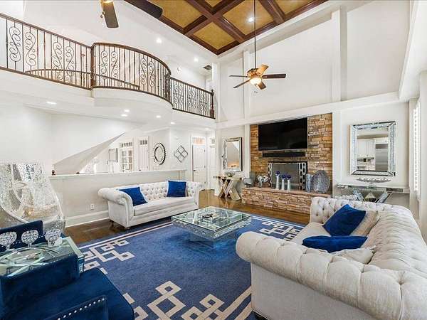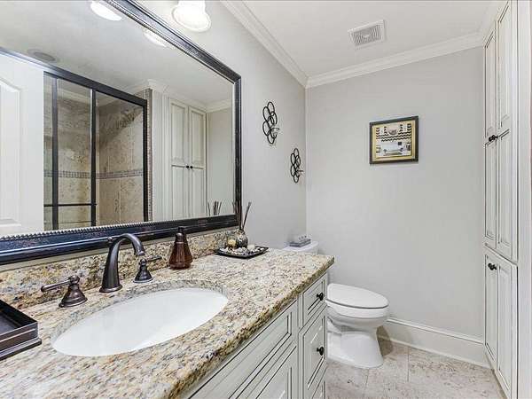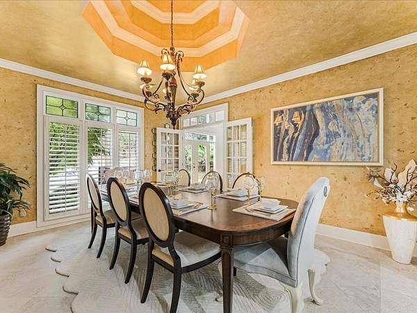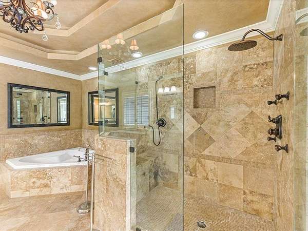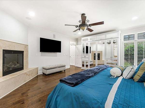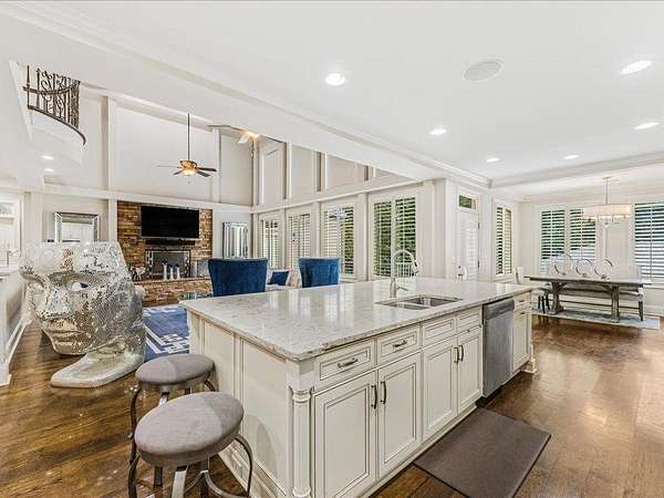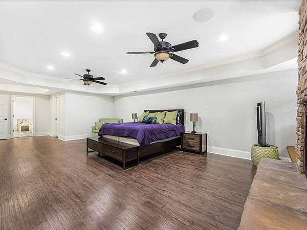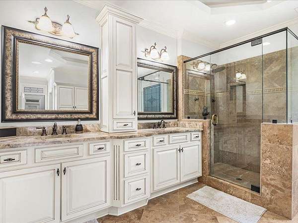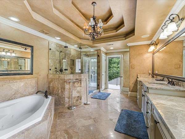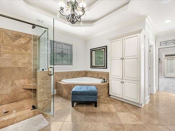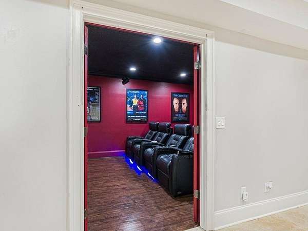 Behind private gates in one of Peachtree City's most admired locations lies a corner lot residence, that redefines luxury living. From the moment you arrive, the estate's resort-style heated saltwater pool and jacuzzi sets the tone-a breathtaking focal point surrounded by cascading waterfalls, multiple terraces, and lush, manicured grounds. Every element of this outdoor retreat was thoughtfully designed to evoke tranquility and elegance. The custom designed poolhouse offers an endless space to gather, entertain, and unwind. Whether enjoying a quiet morning by the water or an evening beneath the pergolas beside the firepit, this backyard transforms every moment into an experience. Inside, the home is equally captivating. A grand foyer opens to a dramatic three-story living room with coffered ceilings, floor-to-ceiling windows, and a striking stone fireplace-framing panoramic views of the pool and gardens beyond. The recently renovated kitchen blends style and functionality, featuring an oversized island, custom cabinetry, and seamless connection to the main living and dining spaces. The layout offers dual owner's suites-one on the main level and another upstairs with its own private laundry-ensuring comfort and privacy for all. The terrace level continues the story of refined living with an additional full bedroom suite. A winding staircase leads to a completed basement featuring a massive guest quarter, theater, spacious fitness center, as well as a full and half bath. Completing the estate is an expansive bonus apartment above the three-car garage, featuring a full kitchen and open-concept living area-ideal for guests, extended family, or a private studio retreat. Elegant, private, and designed with intention-this residence is a rare opportunity to own one of Peachtree City's most distinguished addresses, where every detail inspires and every day feels like a getaway. Enjoy more than 100 miles of golf cart and multi-use trails, along with convenient access to shopping centers and dining options. This estate is served by the Fayette County School System, "Schools are "A" rated. A MUST SEE UNIQUE HOME