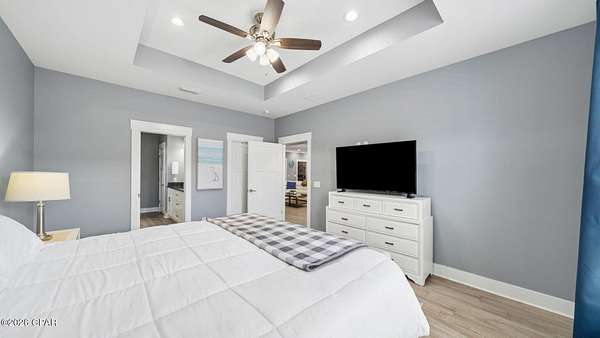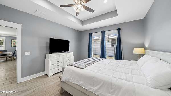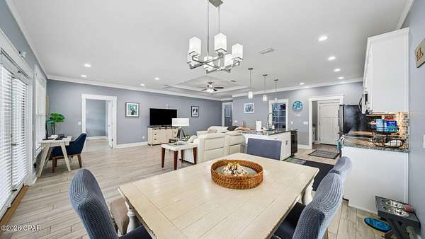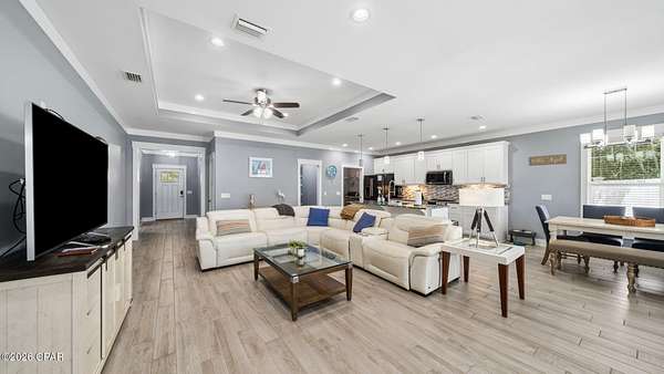 Welcome to 330 Palm Drive--an exceptional opportunity in the highly sought-after west end of Panama City Beach. Perfectly positioned just a short 10-minute walk to the sugar-white sands and emerald waters of the Gulf, this beautifully appointed 3-bedroom, 2-bath home blends coastal charm with modern comfort. Step inside to discover an inviting open layout highlighted by raised tray ceilings in every room, creating a spacious and airy feel throughout. The gourmet kitchen is a true centerpiece, featuring an oversized island, stainless steel updated appliances, and an extra-large refrigerator--ideal for entertaining or hosting guests. The home is tastefully furnished with coastal decor, offering a turnkey experience for immediate enjoyment or rental income. Custom finishes elevate the space, including beautifully designed bathroom counters and showers, along with spacious custom walk-in closets that provide both luxury and functionality. Outside, enjoy your own private backyard--perfect for relaxing after a day at the beach, entertaining friends and family, or creating your own outdoor oasis. With no HOA and no rental restrictions, this property offers unmatched flexibility. Whether you're searching for a primary residence, second home, or a high-performing short- or long-term rental investment, 330 Palm Drive checks every box. Located in one of the most desirable areas of Panama City Beach, you're just minutes from dining, shopping, and local attractions, all while enjoying the quiet charm of the ''West End''. Don't miss your chance to own a piece of paradise with endless potential. Call me OR your trusted realtor and see this home for yourself!