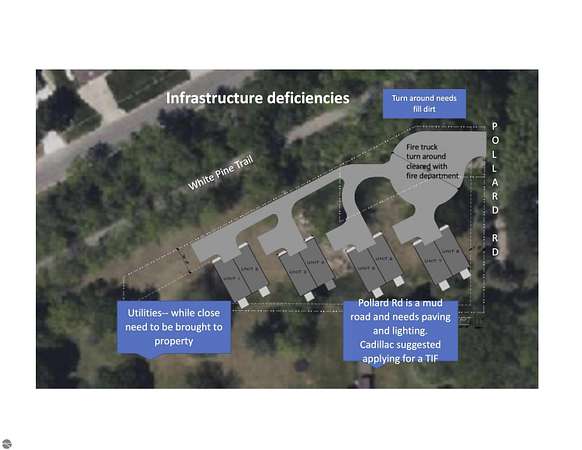 Zoned multifamily, this nearly 1 acre partly wooded parcel within the Cadillac city limits is begging to be developed. Current owner has spent the past two years working with the City of Cadillac, an architect and a surveyor to get the site approved for a development known as White Pine Woods and now you just need to take it the rest of the way! Seasonal views of Lake Cadillac too. Also has direct frontage on The Fred Meijer White Pine Trail which is the longest paved trail in Michigan, spanning 92 miles connecting Grand Rapids to Cadillac. It is also the third longest paved trail in the country as verified by americantrails.org. The White Pine Trail has been named as one of the "Top 100 Rails-to-Trails" in the US as determined by the national Rails-to-Trails Conservancy. As of June 2025 the White Pine Trail is 100% paved. This listing is made up of 3 parcels: 10-087-00-074-00, 10-087-00-075-00 and 10-087-00-076-00.