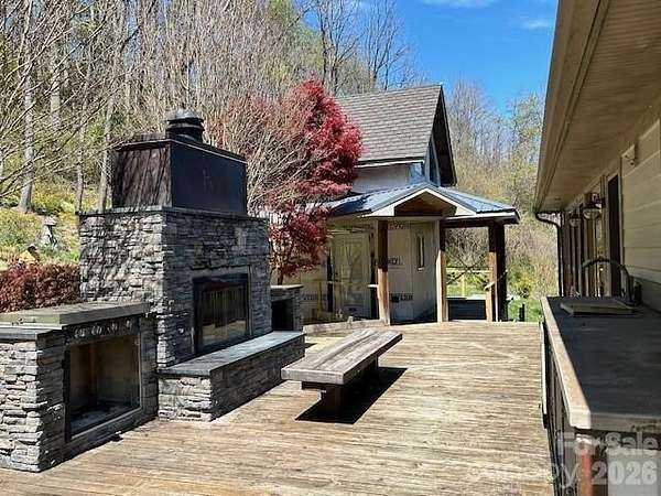 This knoll-top Contemporary Cape Cod home sits on a 1.59 acre lot with east-facing year round mountain views. The timeless design and functional layout provide a foundation with considerable potential. This three-bedroom, four-and-a-half-bathroom home presents an exceptional investment opportunity with stunning mountain panorama views and sunrise vistas. The covered mountain-view porch provides an ideal outdoor retreat, while mature evergreen borders to the rear and a private patio fire pit area enhance the property's natural appeal. Other features include an outdoor kitchen, sunroom, unique enclosed grill room, unfinished detached guest house with loft and its own full bathroom. Partially finished basement has a wet bar/rec room, mudroom, bonus room, playroom, laundry, full bathroom and workshop space. There is an outdoor shower and a private enclosed firepit patio area. The home features mountain view windows and a sun-filled 2 story living room that showcase the seasonal foliage display throughout the year. Located close to Lake Junaluska Golf Course, with convenient access to Lake Junaluska Recreation Area and Maggie Valley Festival Grounds, this property offers both recreational amenities and location advantages. With solid structural foundation and classic architectural elements, this home provides an excellent canvas for transformation. The combination of natural beauty, recreational access, and generous bathroom count establishes strong potential for a successful renovation project with substantial upside value for discerning investors. This is a Fannie Mae HomePath property.