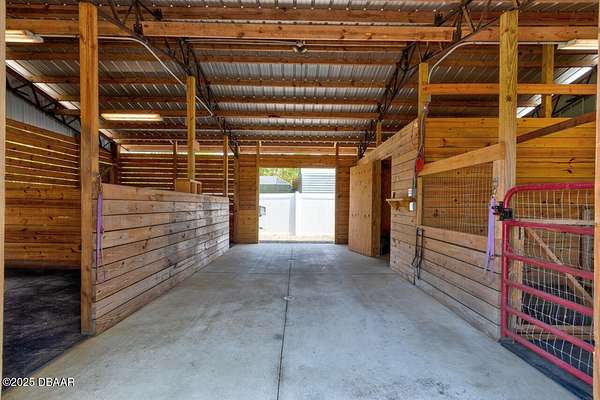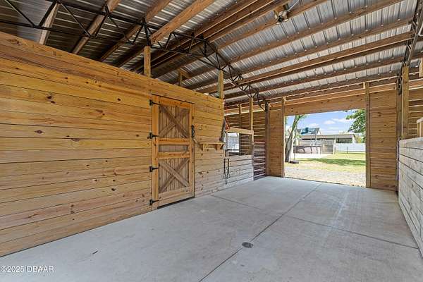 Stunning country living at its best on a paved road. Fully updated property. Roof fully replaced with metal roof in 2020. Windows upgraded to Paella double pane insulated. A/C replaced 2023. Three stall pole barn with electric and water throughout. A private tack/feed room, covered wash rack, mosquito/fly misting system, and separate storage unit. The property is zone AG and has an agricultural exemption for the pole barn. Buyer to research requirements to be met for such exemption. The goats on the property meet the requirement and convey with the property. Retention pond is fully stocked with a variety of fish. Beautiful pavers and pool deck with added privacy of rolled out screens. Pool has been removed and a pool will not convey. Stunning white vinyl fencing along south property line and private electric gated entrance. Home also conveys with a one year home warranty including septic and well equipment. Come see your forever home.