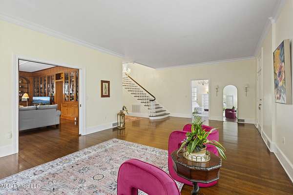 Step into this custom built stunning colonial-style residence at 330 S Extension Street in the historical town of Hazlehurst, Mississippi. This beautifully renovated and solid home was originally built by a Swedish boat builder and features five spacious bedrooms and 2.5 baths, perfectly blending modern amenities with classic elegance. As you enter the front doorway, you will be impressed by the stunning staircase and the home's many architectural features...be sure to look up! The flow of this home is open and airy and the 10 ft ceilings contribute to that feeling. The interior has been meticulously updated from head-to-toe. The main level is designed for both comfort and style, featuring a spacious living/family room, an inviting formal dining room with mahogany built-in china cabinet with felt-lined drawers for silverware and an impressive library adorned with hand-carved mahogany and walnut built-in bookcases. There is a welcoming wood-burning fireplace in this space. This room features 7 ft pocket doors and oak floors. The expansive kitchen is a chef's delight, complete with a gas range which is also a convection oven, walk-in pantry, and a built-in china cabinet. Enjoy your morning coffee or unwind in the sunroom that opens to a serene courtyard. This sunroom is wonderful for indoor porch sitting and perfect for those who love plants as they thrive here. The master suite is located downstairs and is a dream retreat, featuring its own sunroom for quiet moments of relaxation. It is spacious and has many amenities including but not limited to abundant closet space with built-ins, a dressing room and a well-proportioned master bath. The full master bath is original mid century and has coke bottle glass features, and original 3 color tile.The large laundry room, equipped with a gas dryer, electric washer (both to remain with the property) and a new water heater, add to the home's conveniences. Gorgeous oakwood floors flow throughout. Let's go upstairs to see the beautiful ''bead board'' bath with ceramic tile floors at the top of the stairs! On this floor you will find 4 more well-proportioned bedrooms and a media room which could count as a study, additional bedroom or craft area. The beautifully landscaped and fenced backyard is perfect for outdoor gatherings and leisure. Outside grounds are well-manicured and an irrigation system has been installed to keep everything plush and growing. There are several outdoor buildings such as: a greenhouse, dog kennel, workshop with detached 2 car enclosed garage, small storage building and a delightful cottage that could be used as a studio or whatever you desire it to be. Peep the pictures! Impressive! The sellers have loved caring for the grounds and you will find abundant wildlife roaming the back part of the 1.7 +/- yard., flowers and other ideal landscape vegetation... Japanese flowering cherry trees, roses of all types, azaleas, camellias, pecan trees, elephant ears, red maple trees, and magnolias just to name a few. There is a safe and secure basement that has been well-cared for. There is a sump pump in this space. Don't miss out on this truly exceptional opportunity! Call your favorite Realtor today for a private showing and make this dream home yours!