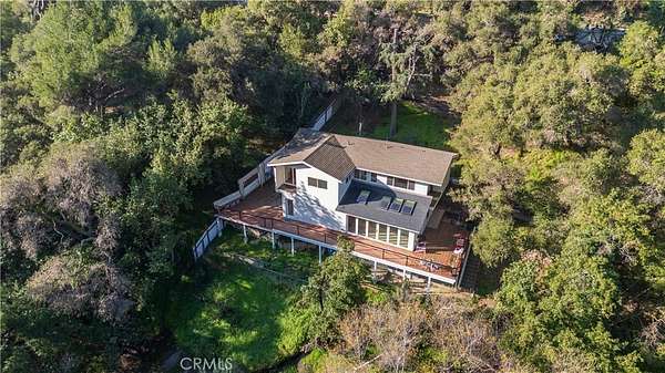 Privately set on approximately 2.45 acres across three parcels, this Topanga retreat offers exceptional seclusion while being just over 4 miles from Topanga Beach and moments from local shops, dining, and canyon amenities. Surrounded by mature oaks and natural landscape, the property enjoys peaceful canyon views and a flowing creek in the backyard, creating a truly tranquil setting.