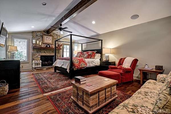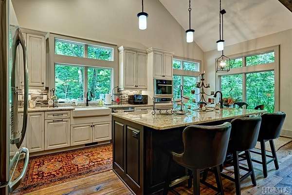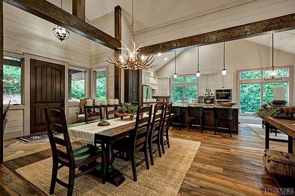 Est $9,528/moDo not miss this move in condition, spectacular house located off Buck creek road on Western Rhodes Road. 3 bedrooms, plus additional flex spaces. Multiple fireplaces. Open Great room concept with custom kitchen, plank wood floors, stone fireplace in the Great room that flows onto a covered porch with hot tub spa. Primary bedroom on main and upper floors, plus guestrooms complete with baths. Outbuilding. Trails lend to your privacy and to explore your own kingdom.