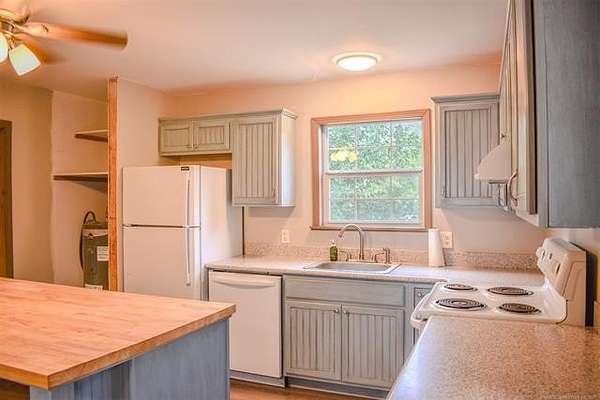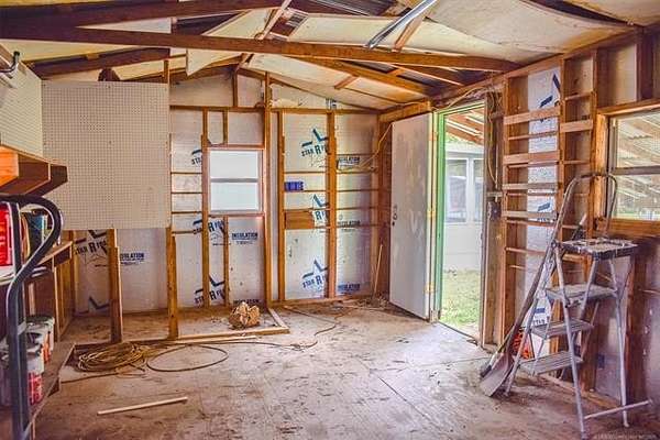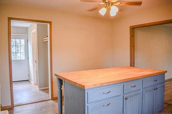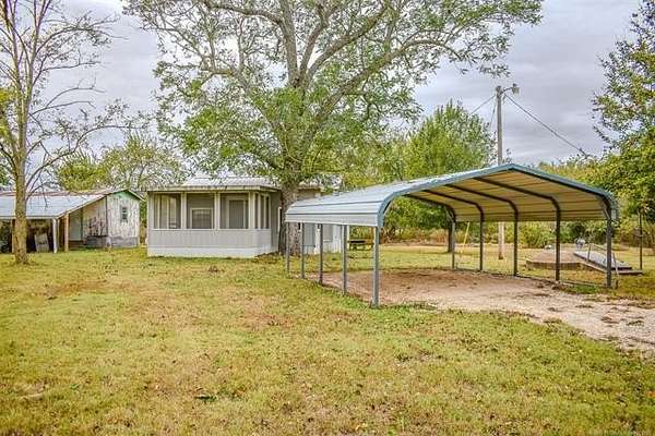 Approximately six-and one-half acres, pond, and house located less than 1/2 mile from the Choctaw Casino & Resort? YES! This home has an open concept, light and bright living area and kitchen with a charming, butcher-block dining island that offers additional storage space and seating for meals. The home offers a primary bedroom with a private bathroom with a gorgeous, tiled shower/tub combo and a very spacious walk-in closet. There is an additional room perfectly suitable as a second bedroom but does not have a closet so use of an armoire would be perfect for clothing storage. Nearby is a bathroom with a stand-up shower with dual bench seating. The home also has a large utility room with full-size washer and dryer connections, a folding counter and abundant cabinetry for storage. The Property also offers a spacious building for storage needs, an inground storm shelter and a carport for parking out of the elements right next to the home's entry. Don't miss out on this great opportunity to own an affordable property as a full-time residence or VRBO that provides peaceful, rural living just minutes away from the popular casino and resort for entertainment and dining, in addition to being a very short distance from the conveniences of town in Hugo and also nearby Paris, TX, only twenty minutes away. Because the Property is platted as lots it is very suitable for division and/or additional residences or developed into a small RV park should one wish.