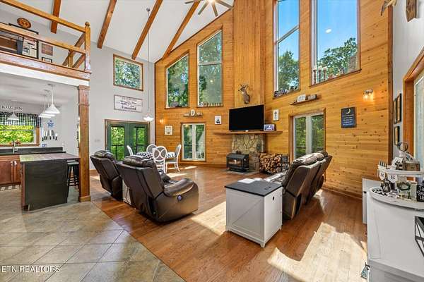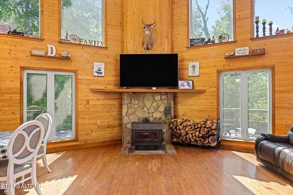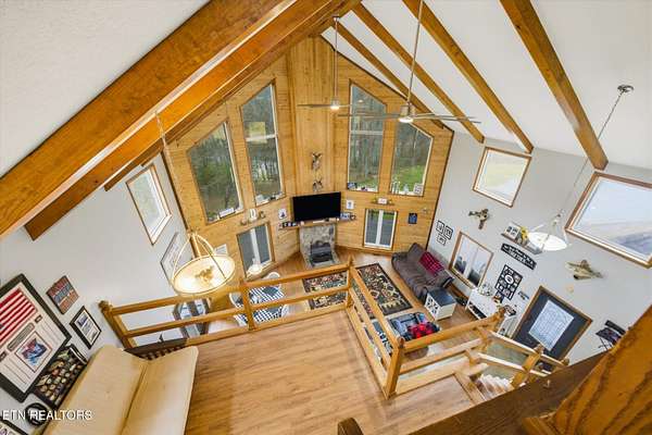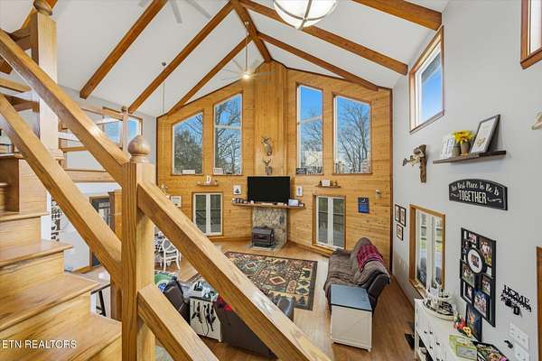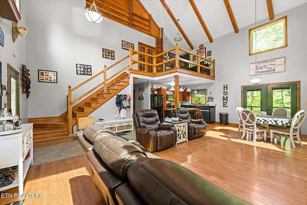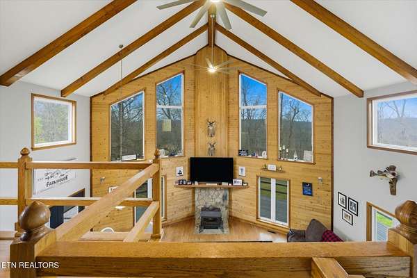 Pictures don't do this property justice--it's even more impressive in person. Come see for yourself. Discover your dream home with this serene 3-bedroom, 2-bath property nestled on 5 private acres along the beautiful Little Tennessee River. Offering 1,874 square feet of thoughtfully designed living space, the home features a spacious great room with soaring cathedral ceilings and expansive tinted windows that fill the space with natural light while showcasing breathtaking views of the river, surrounding mountains, and abundant wildlife. The kitchen is equipped with new appliances, and recent updates include a new air conditioning unit for added comfort. An unfinished bonus room, not included in the square footage, provides the perfect opportunity for additional living space, a home office, or extra storage. Step outside to the wraparound covered porch--ideal for relaxing, entertaining, or simply enjoying the peaceful sounds of the river and the natural beauty that surrounds you. The acreage offers plenty of room for farm animals, recreational use, or hunting, making it a versatile property for a variety of lifestyles. Additional features include a detached 2-car garage/workshop with power and water, perfect for hobbies, storage, or workspace needs. Whether you're looking for a full-time residence, vacation retreat, or investment opportunity, this rare riverfront property offers the best of East Tennessee living. Buyer to verify all information.