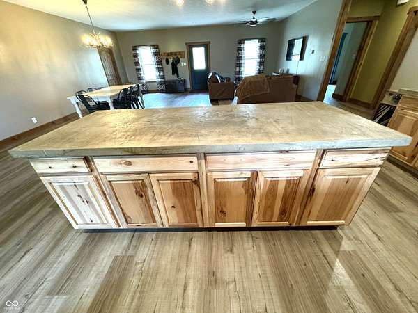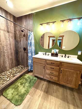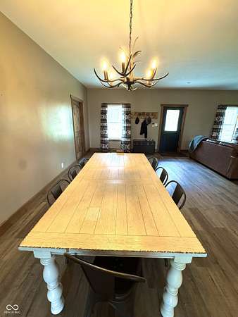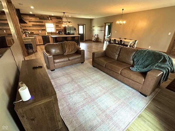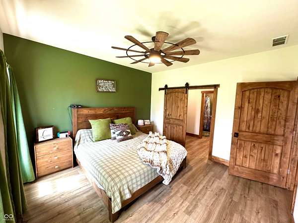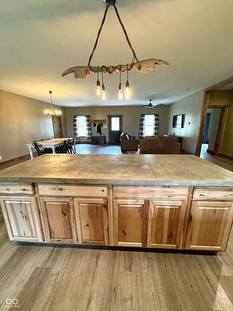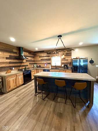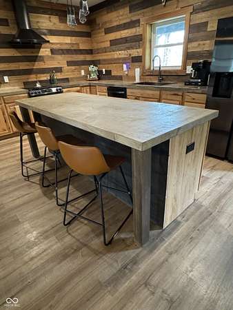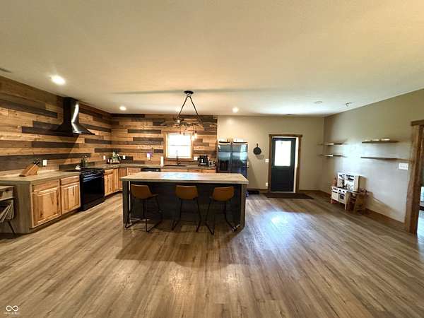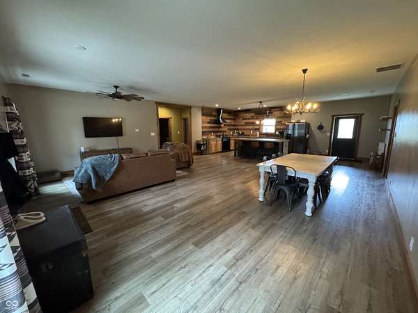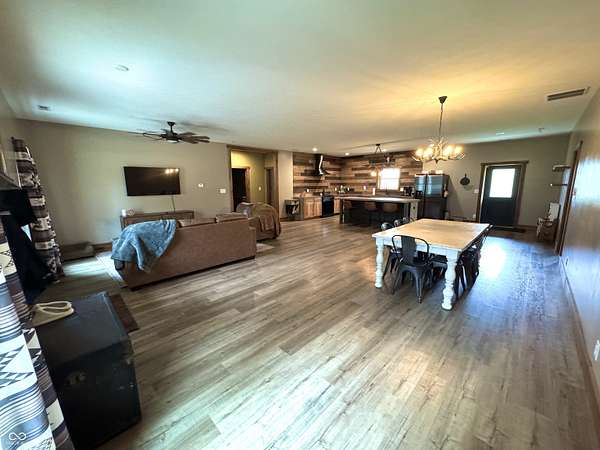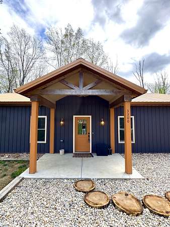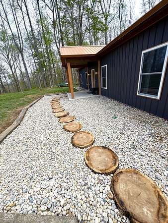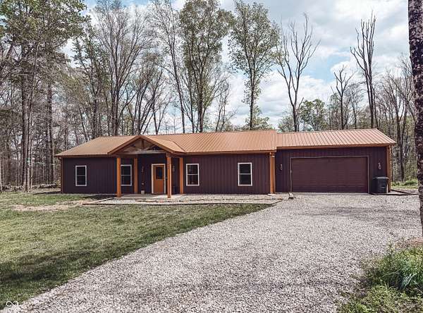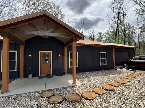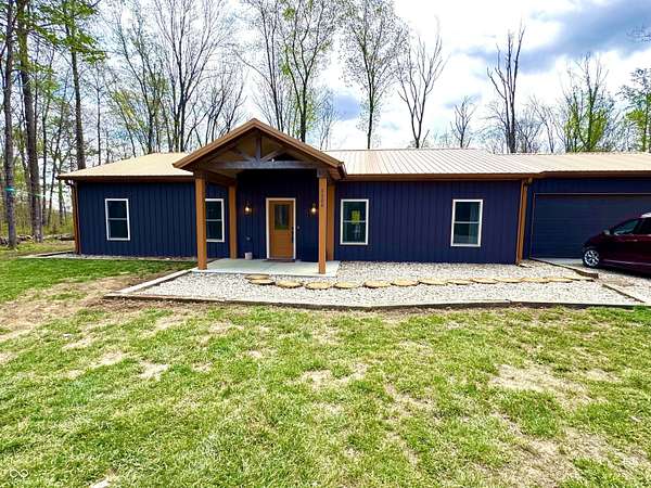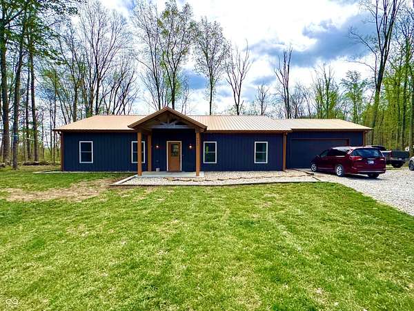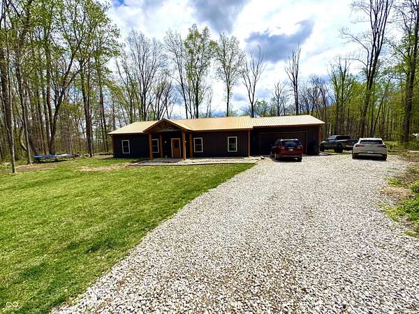 Escape everyday into the rolling hills of Brown county on almost 13 scenic wooded acres, this Modern Rustic Ranch home offers you lots of privacy and refined county living in a peaceful wooded setting with a blend of comfort & rustic beauty. This home features an Open Floor Plan with lovely Wood Luxury Vinyl floors throughout the entire home, 3 bedrooms all including Gorgeous Solid wood doors & trim & Elegant Wood Like Ceiling fans. The master bedroom suite includes a walk in closet, Pinterest-worthy master bath that includes custom wood look tile walk in shower, Rustic double vanity and rustic wood lights. Home also includes a very rustic country kitchen with extra large farm sink overlooking the beautiful backyard woods, an enormous concrete top kitchen island, beautifully installed and showpiece wood backsplash, concrete counter tops and LOTS of custom made cabinets. All great for everyday living and also entertaining. Kitchen is Open to dining room and great room. Step outside and enjoy the tranquility of peaceful stunning views of woods and nature, a home-made pool for kiddos or parents, fire pit and endless opportunities. This property is a dream location for nature lovers, hikers, outdoor enthusiasts, & also ideal for animals, recreation or entertaining, the possibilities are endless. The home delivers the privacy of country living and the opportunity in one of Brown County's most desirable settings!