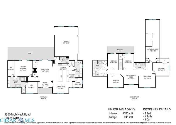 Welcome to 3300 Mob Neck Road on the gorgeous Potomac River! Fishing, Boating, Days on your Private Beach, relaxation at its finest! This custom 4700 square foot home was built in 2022. Enter the gorgeous stone pillars flanking the driveway and the views begin! Circular driveway to the massive 8x8 Wrought Iron double front doors with Rain glass on the interior. Large & Open Living Kitchen with Quartz countertop, leathered marble counter tops in the primary bath. Butlers pantry, large pantry, office and first floor laundry leads to 3 bay side entrance garage. First floor primary bedroom and luxurious primary bath, his and hers walk-in closets/rooms! Luxury shower system in primary bath. Tile flooring throughout. 3 bedrooms with additional office along with 2 additional bonus rooms, game room, second floor living space, Second floor laundry, 4 full baths total! Private Beach!!! Community Water system , conventional septic, invisible fence installed along with multiple doggie doors! Tankless water heater. Spend relaxing days and nights at the beach or in front of the outdoor fireplace