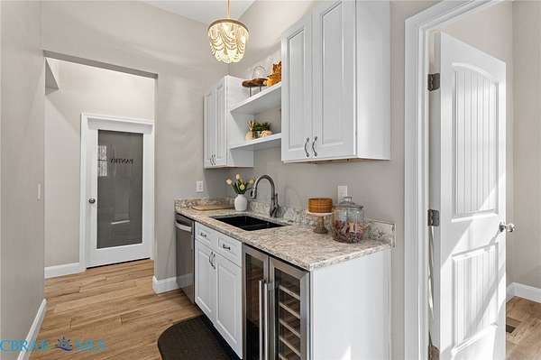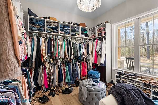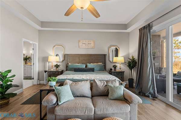 - Bedroom On Main Level, Ceiling Fans, Dining Area, Eat In Kitchen, Fireplace, Granite Counters, High Ceilings, Kitchen Island, Main Level Primary, Pantry, Recessed Lighting, Walk In Closets, Wet Bar