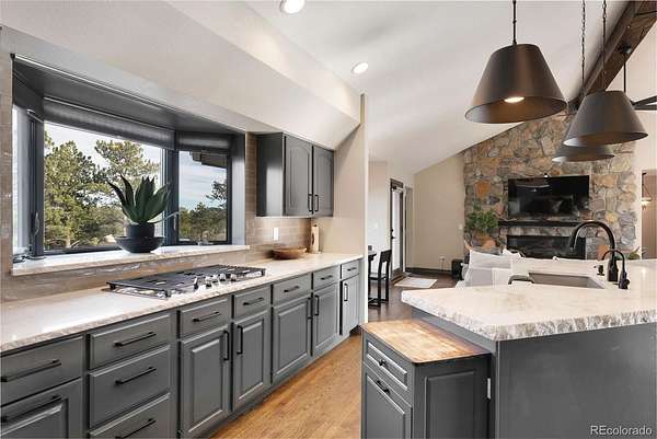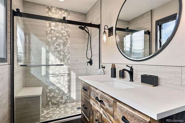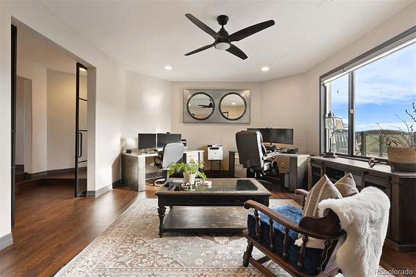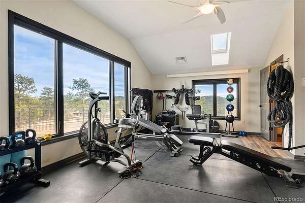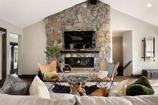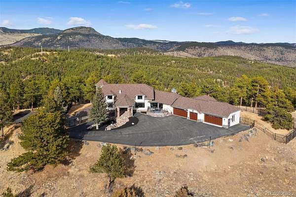 One of Soda Creek’s most exceptional offerings, this 20-acre ridge-top estate commands unobstructed 360° views from rolling vistas to the Continental Divide! The setting feels cinematic—sky meets mountain—while the homesite is elevated above a private meadow suited for a barn, pasture, or equestrian pursuits. With only three homes on the street, privacy is paramount, yet I-70 is minutes away, linking Denver, DIA, world-class skiing, and everything Colorado, making the neighborhood one of the most sought-after in North Evergreen. Reimagined with a local designer, the home blends a modern mountain aesthetic with custom updates throughout! True main-floor living provides a rare advantage: primary retreat-like suite, oversized office, dining, laundry/mudroom, and flexible spaces—all on a single level. The open-concept family and gathering areas flow naturally into a redesigned kitchen, anchored by a stunning 2" raw-edge marble island, butler’s bar, and top-tier appliances. NanaWall doors dissolve indoor/outdoor boundaries to a south-facing deck framing endless views. A new oversized patio (pre-piped for heat) showcases an infinity-edge swim spa. A gated, newly sodded, huge backyard is perfect for entertaining or quiet reflection. Key longevity assets include a newer Class IV roof, furnaces, gutters and water heaters, replaced windows, upgraded electrical panel, and durable exterior stonework. Two garages provide exceptional capacity for up to 11 vehicles, ideal for collectors, recreational toys, or a workshop.Upstairs, three ensuite bedrooms share a versatile loft, while the lower level—with rec-room, sunroom, steam shower, and private entrance—offers generational space for guests, wellness, or a studio. Soda Creek residents enjoy private trails, a neighborhood pond for fishing and skating, and Evergreen’s mountain-town energy, historic charm, and convenient amenities within minutes—an estate defined as much by views, lifestyle, and rare seclusion as by the land itself.