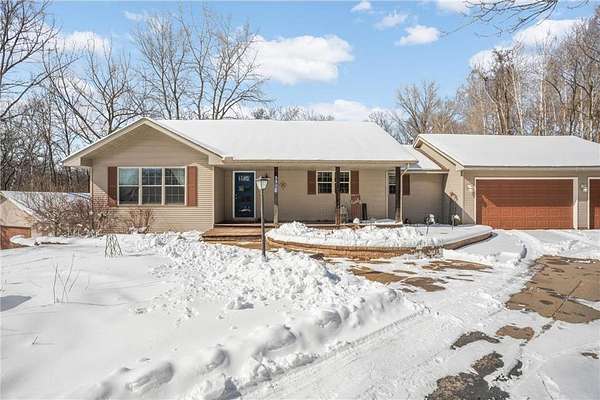 The main level features a cozy family room with a gas fireplace, while the finished lower level offers two additional bedrooms, a spacious recreation room, and a full bath. Outside, enjoy professionally manicured landscaping and incredible storage: an attached three-car garage plus a separate, oversized two-car garage that is fully insulated and heated.Deck has been recently restained as well. This rare find is a must-see!