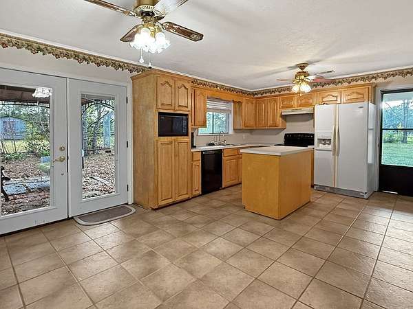- Blinds, Ceiling Fan(s), Kitchen Island