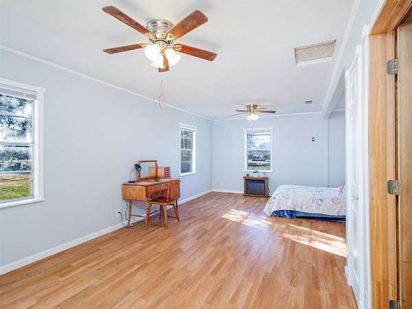 Est $2,647/moThis charming three-bedroom, three-bath house sits on 16 acres, just six minutes from town. It features covered parking, a screened-in porch, natural wood walls, and a cozy fireplace. With three primary bedrooms, it offers ample space for families. Outside, find a barn or shop with two horse stalls, a chicken coop, and a mix of wooded and open land. The property is on county water but includes a shallow well for watering livestock and gardens, all securely fenced with an automatic gate.