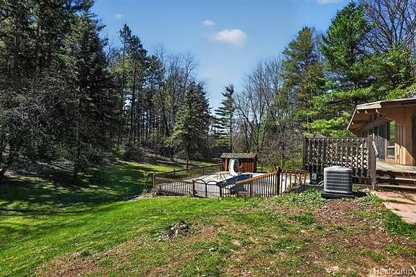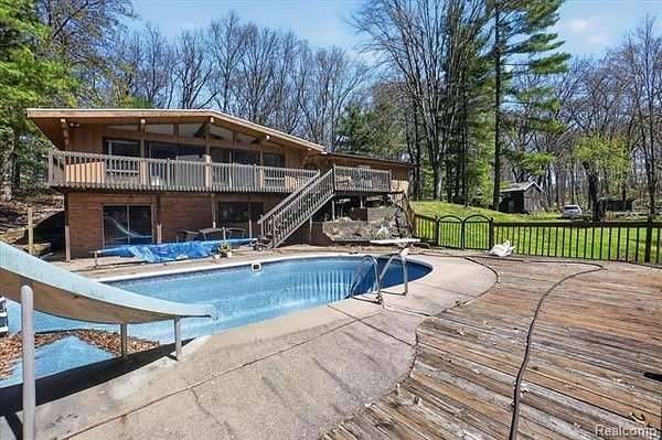 Tucked away on 3.55 acres of serene, wooded land, this one-of-a-kind property offers the perfect blend of privacy, nature, and comfort. A stunning vaulted great room with a wall of windows brings the outdoors in, showcasing breathtaking views of your private backyard retreat. Step outside and you'll find an inground pool, serene fish pond with waterfall, and a beautifully designed butterfly garden creates a backyard oasis that feels like your own personal getaway. Wildlife lovers will appreciate the frequent visits from deer, turkey, and other native wildlife, making every day feel like a nature escape. For hobbyists or those needing extra space, the 28x40 pole barn with a cement floor offers endless possibilities. If you've been dreaming of quiet mornings, scenic views, and room to roam, this is it. Pool liner is on order and will be installed, pool cleaned and filled, ready for summer within a couple of weeks. Sellers enjoy the pool daily every summer. New kitchen with appliances in 2021, new washer & dryer 2021, furnace 2022, A/C 2022, hot water heater 2022, whole house water filtration system with saltless water softener, well pump 2025, pool pump and filter August 2025, washer & dryer 2021.