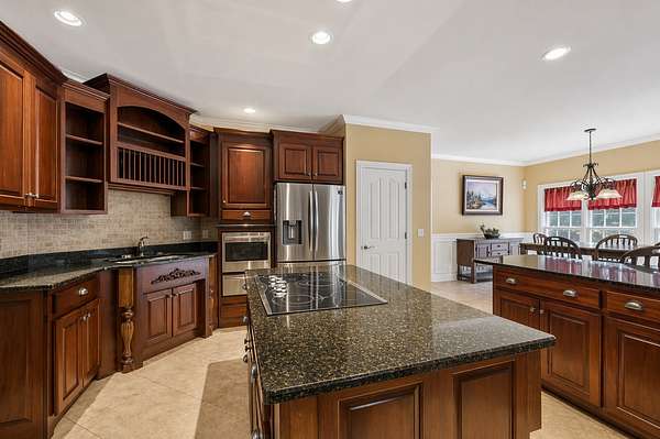 - Built-In Electric Oven, Cooktop, Dishwasher, Microwave, Refrigerator, Stainless Steel Appliance(s)