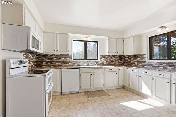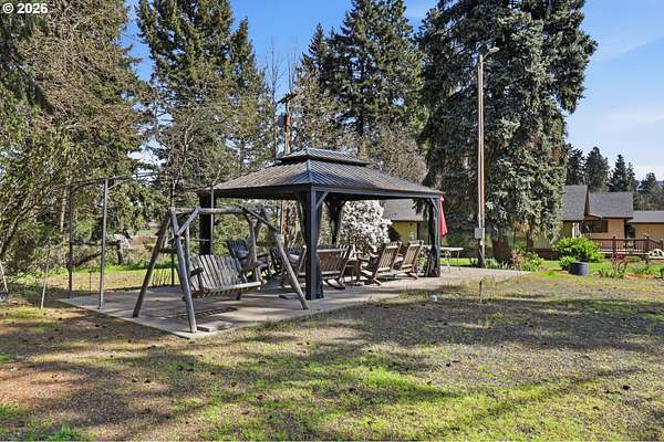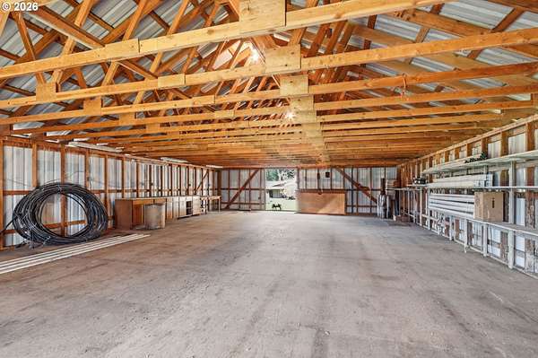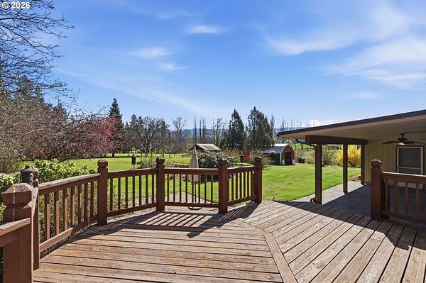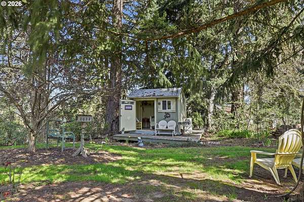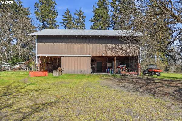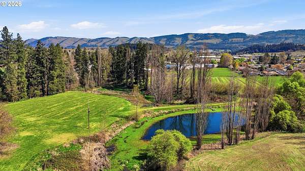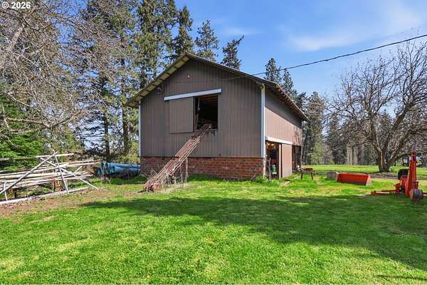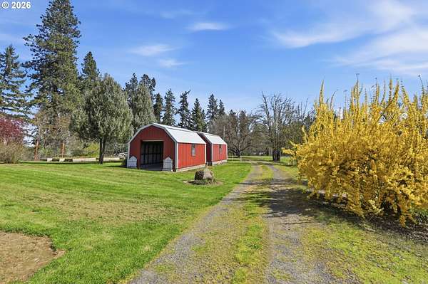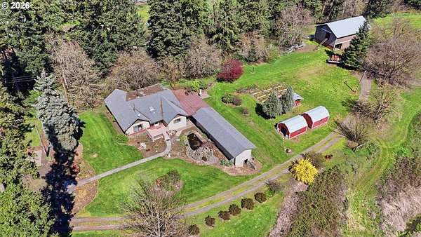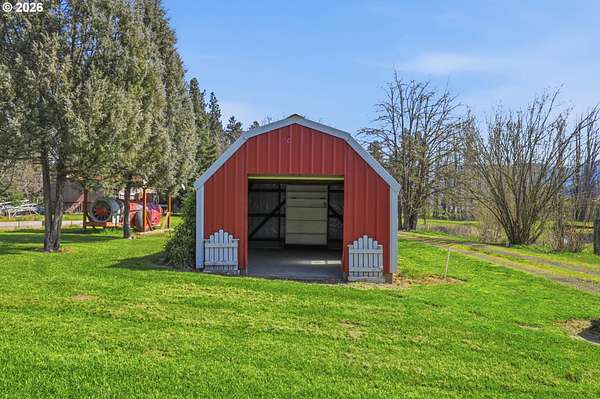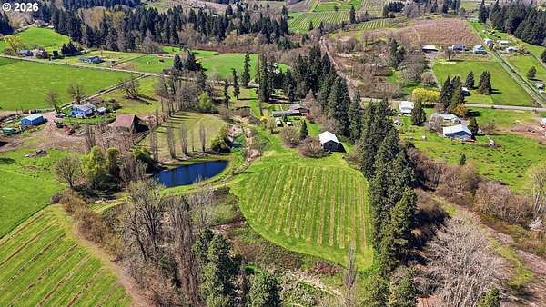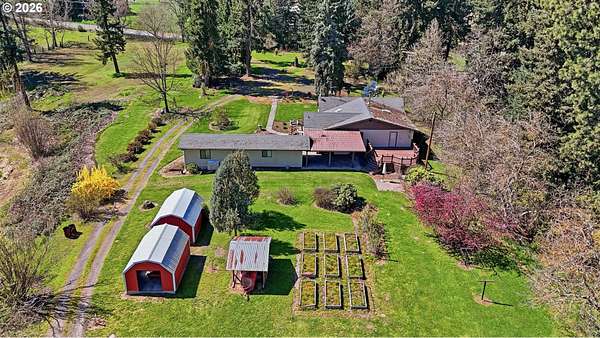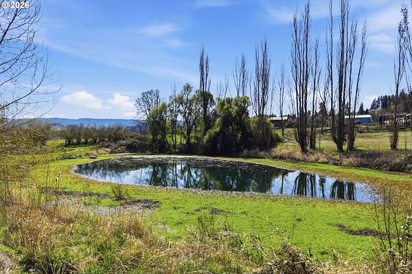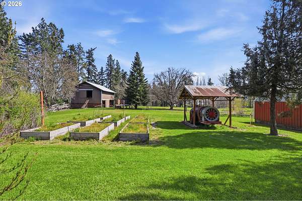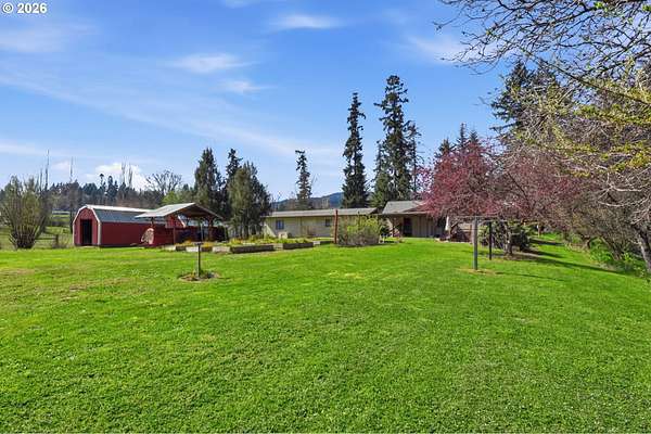 Nearly 20 usable acres in Hood River with a shop, outbuildings, and mountain views. The single-level home is filled with natural light and features a comfortable layout with a wood-burning fireplace, skylights, and easy flow between the living, dining, and kitchen spaces. Step outside, and it all opens up. The covered front patio is made for gatherings, whether it's summer barbecues or relaxed evenings with friends, while the back deck overlooks the garden area and the surrounding landscape. Eight raised garden beds and mature grounds create an ideal setup for growing or hobby farming, with most of the flat areas already equipped with full irrigation piping. The property benefits from irrigation rights through Hood River County, along with additional water rights supported by an on-site pond and a creek. The property is well-equipped with multiple outbuildings, including a very large two-story shop with cooling storage for fruit, two 12x16 red barn-style storage sheds, and an adorable she-shed that's perfect for crafting, reading, or a quiet retreat. A separate cabin adds even more flexibility and could be transformed into a guest house, farm store, or expanded living space. Gently sloping land with a mix of pasture, orchard potential, and open space is complemented by a pond and sweeping territorial and mountain views. This is the kind of property that supports both lifestyle and long-term versatility, all just a short drive from the heart of Hood River.