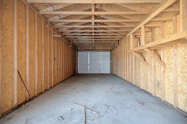 Two car detached garage for keeping vehicles protected or for storage.