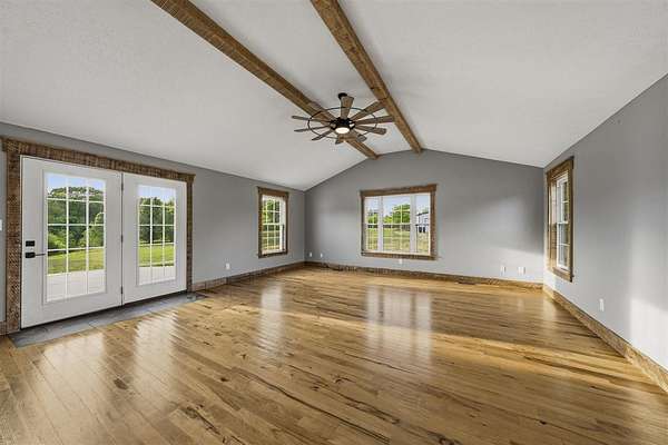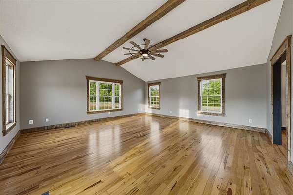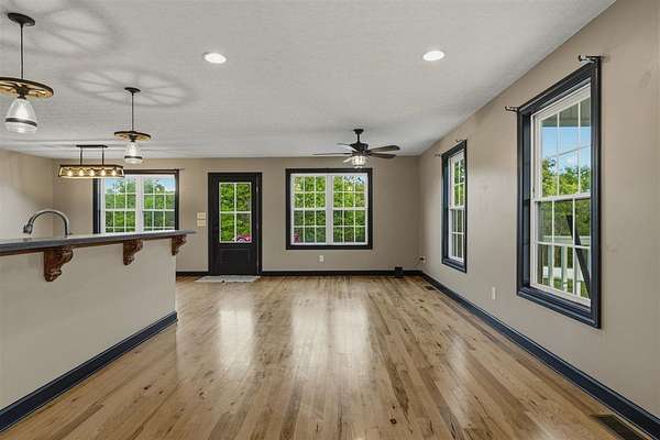 If you are looking for a secluded, peaceful property to raise your family, some animals, do some hunting, or just to sit out and enjoy seeing the deer, turkey, and other wildlife running about....this may be the place for you !! This private 25+ acre property boasts a 4-bed, 3 full bath home with a very spacious and open kitchen/dining/living area with hardwood floors plus an additional large family/rec room to hang out in ! There is a balcony off of the main level living space where you can sit out and enjoy the gorgeous view of your property, and there is a full, finished walk-out basement with another large patio below. A large detached garage/shop with concrete floors perfectly completes this amazing property !!