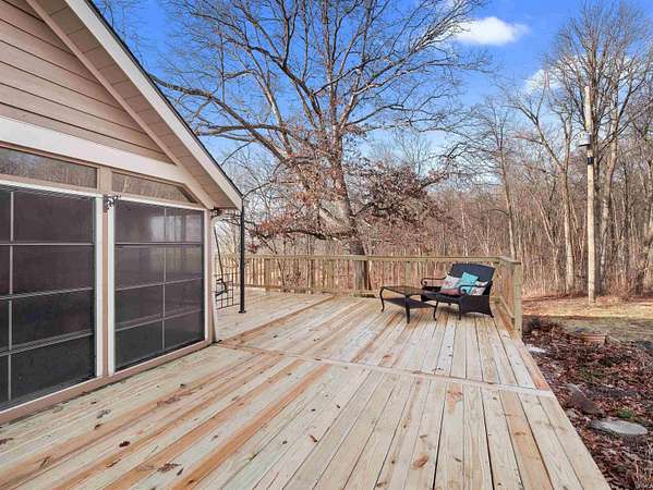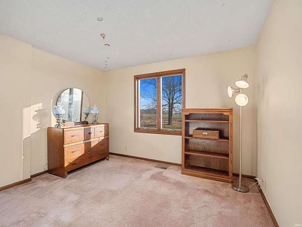 Welcome home to this spacious 5-bedroom, 2.5-bath country retreat set on nearly 20 scenic acres, offering 2,869 square feet of comfortable living space ideal for everyday life and entertaining. The main level welcomes you with an easy flow from the foyer into the breakfast area and kitchen featuring double ovens, an electric cooktop, double-basin sink, pantry, and durable luxury vinyl plank flooring. Just off the kitchen, the formal dining area and the generous 22x14 living room both overlook the peaceful, wooded rear property, filling the home with natural views. A few steps up, the private primary suite features vinyl plank flooring, a walk-in seasonal closet, and a full bath with heated towel rack, and walk-in shower. Enjoy direct access to the newly remodeled deck and seating area, offering privacy and tranquil views. Three additional upper-level bedrooms share a second full bath with tub/shower surround, double vanity, and tile flooring. The lower level provides rare flexibility with a fifth bedroom, den, or workout room, along with a half bath, laundry area, storage, and walk-in access to the concrete crawl space. The beamed family room is centered around a wood-burning fireplace and opens via sliding doors to the patio, creating a cozy space to relax while taking in the surrounding landscape. Outside, the low-maintenance exterior features Hardie plank siding, new gutters, and steel-frame Andersen windows for durability and efficiency. The remodeled deck and patio extend your living space outdoors. A screened in patio offers a peaceful retreat for morning coffee or evening tea. The attached 2 car garage features an epoxy floor for easy cleanup and protection from the weather. Two exceptional outbuildings add tremendous versatility: a 64x56 pole barn with a 40x24 lean-to, four stalls, indoor riding area, and hay and tack storage; plus a 48x36 pole building with three roll-up doors, concrete floor, and overhead storage, ideal for equipment, workshop, or hobbies. An open-loop geothermal HVAC system ensures year-round energy-efficient comfort. With 20 acres of open and wooded land, this property is perfect for horses, recreation, gardening, or simply enjoying privacy. Conveniently located just 12 minutes from downtown Auburn, you'll enjoy the best of rural DeKalb County living with easy access to dining, shopping, and events. Come see why this should be your next home.