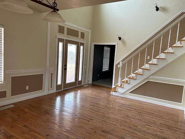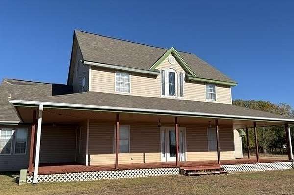 Tucked behind a grove of trees, this property will give you a feel of country living while close enough to town to have city utilities. This 2 story home sits on approximately 7 acres (mol) and features large wood decks at front and back. Lots of space with a family/game room and a formal living with fireplace. There is a formal dining room and an eat in kitchen open to living room. Primary suite downstairs features a bath with double sinks, whirlpool tub, walk in shower, master closet that doubles as a safe room. Upstairs you will find a second primary suite and 2 other bedrooms with a jack and jill bath. Also, on the property, there is a shop, RV storage and carport with shed that could be a 1 car garage.
