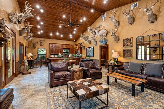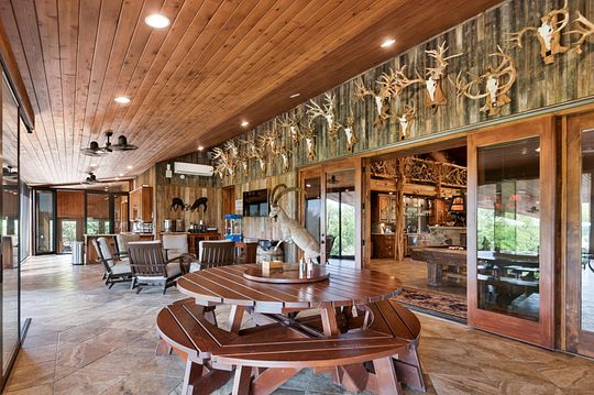 The Colorado River Ranch's main lodge is an expansive 10,000+/- SQFT beauty. Throughout the lodge one can find multiple communal gathering areas, all with their own unique scenic views of the ranch. The lodge includes a full bar, large dining area, gaming room, commercial kitchen, oversized screened in porch and large outdoor firepit, which both overlook the herds of wild game below. This lodge has 3 bedrooms and 2.5 bathrooms.