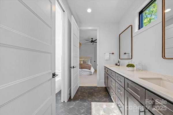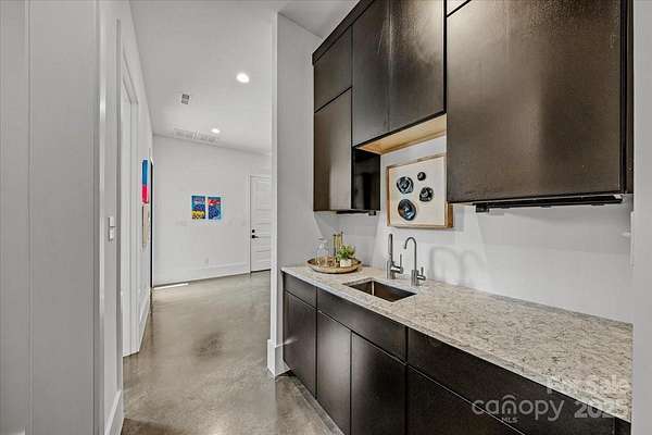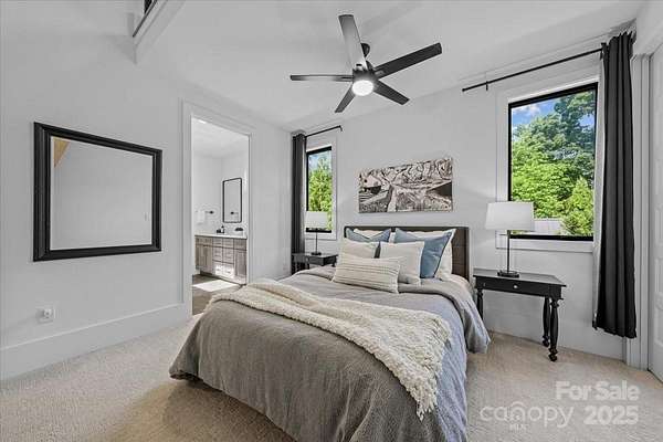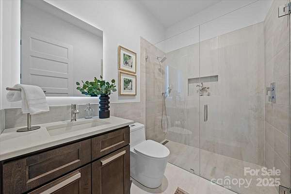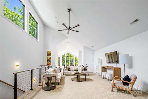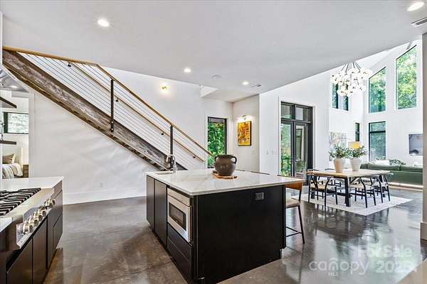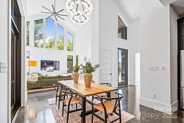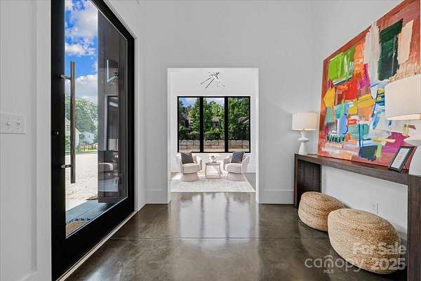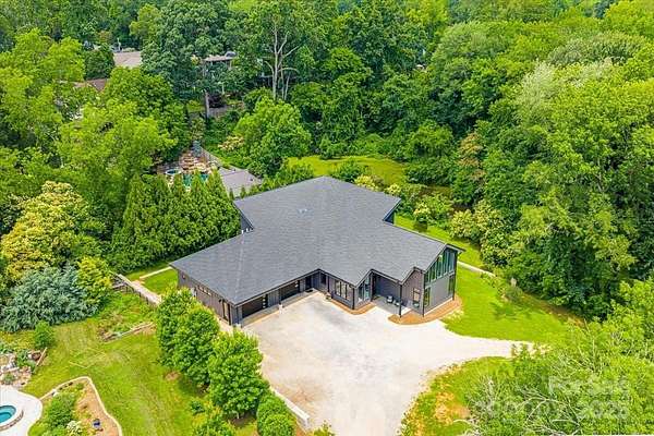 Experience modern living at its finest in this exquisite newer construction home thoughtfully designed, built, and lived in by a local custom builder. This is your unique opportunity to purchase a spec home custom built with energy efficiency and extraordinary attention to detail and ready for your buyer to make their own decorative selections. Located on an extremely rare wooded 1.65 acre lot in Myers Park (literally minutes from Freedom Park) with private rear views of a neighborhood pond offering abundant bird watching, wildlife viewing and a green scape that is nearly impossible to find in the area. The home features 5 bedrooms and 3.5 baths, with three of the bedrooms being located on the main floor. Enter into a grand open living area with 25 foot ceilings in the great room. The great room is lined with windows to view the beautiful treescape and flows into dining and a spacious cooks kitchen with modern black cabinetry, center island with prep sink, and top of the line appliances. An expansive covered porch is accessed through modern french doors just off the dining area and is set up for an outdoor kitchen. There are multiple flex spaces throughout with a sunny sitting room at the entry, as well as a room perfect for home office, workout or hobby space, and an upper level loft which offers an abundant open bonus space. A main level primary suite features vaulted ceiling, two walk in closets and an ensuite with modern floating vanity, walk in shower with operable skylight, and access to the outdoor shower. Delight in all of the architectural details such as coveted cathedral ceilings with floor to ceiling windows, an open steel and wood tread staircase, concrete flooring, floating vanities, lofts in both upper level bedrooms and much more. The rear of the home allows for a private pool and spa area. The ultimate privacy and a must see in the heart of Myers Park. Conveniently located minutes from Uptown, Freedom Park, Dilworth, airport, and major interstates. This home offers terrific suggestions for final design touches in an Idea Book which can be found in the attachments.