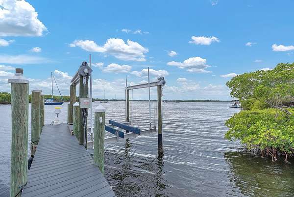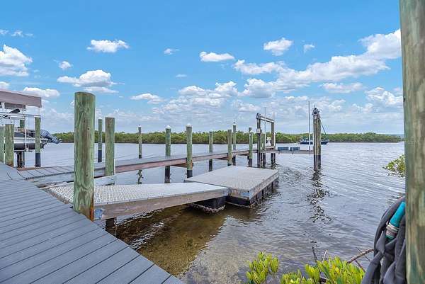 Boaters will appreciate the existing seawall and 60' T-shaped dock, featuring a 13,000-pound boat lift, floating dock, and a 54-foot land-side deck--ideal for relaxing or entertaining along the water. With over 10 feet of water depth, the dock can accommodate large vessels, making trips to the bay fast and convenient.