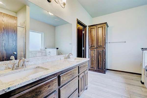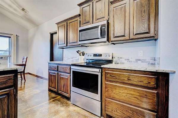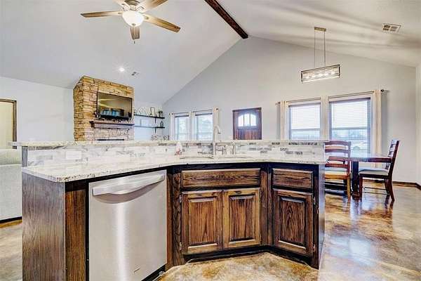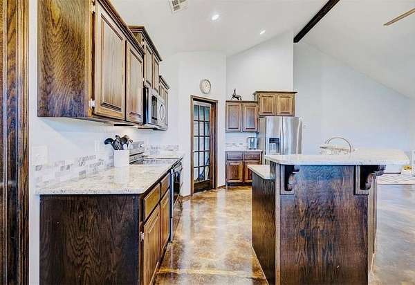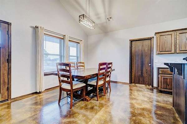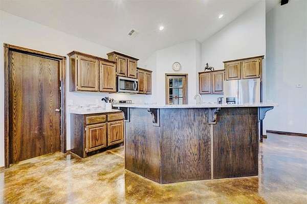 Welcome to your very own 16.41-acre country oasis! If you've been searching for peace, privacy, and wide-open space, look no further. This stunning property offers the perfect blend of rustic charm and modern comfort. Step inside to find beautifully stained concrete floors and an open concept living area with cathedral ceilings and a cozy wood-burning fireplace. The wraparound front porch is ideal for enjoying your morning coffee or taking in breathtaking sunsets. The spacious kitchen is a chef's dream, featuring granite countertops, stainless steel appliances, a breakfast bar, and a huge pantry. A granite-topped laundry room adds convenience and style. The primary suite is a serene retreat with French doors that open to peaceful views of the rolling acreage. The luxurious primary bath includes dual vanities, a jacuzzi tub, a beautifully tiled walk-in shower, and a massive walk-in closet with built-in drawers.