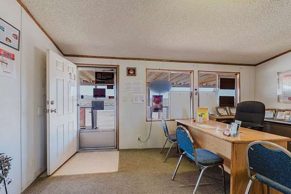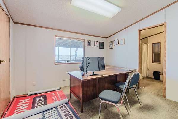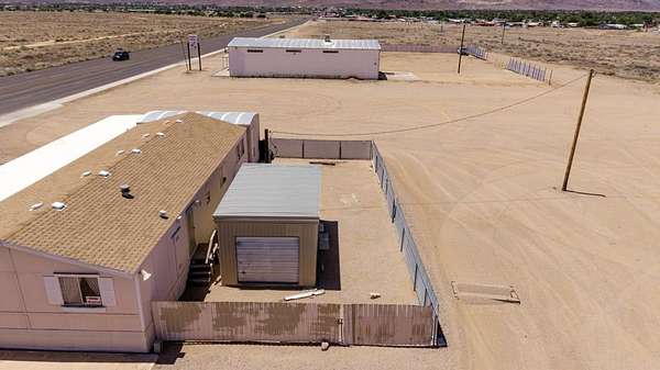 Commercial Hwy property with 3 bedroom 2 bath manufactured home on property used as office/showroom, large permanent signage with over 500' of street frontage. Great for multi use -income producing. Storage Units, Uncovered Storage, Shed Business, Auto Resale Lot and many other uses, (always check with Mohave Planning and Zoning) 2.86 acres with power, septic, water and propane all ready on site so dream big! Shed business moving...not part of sale.