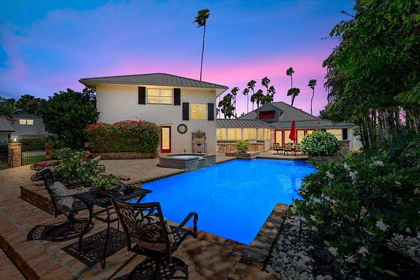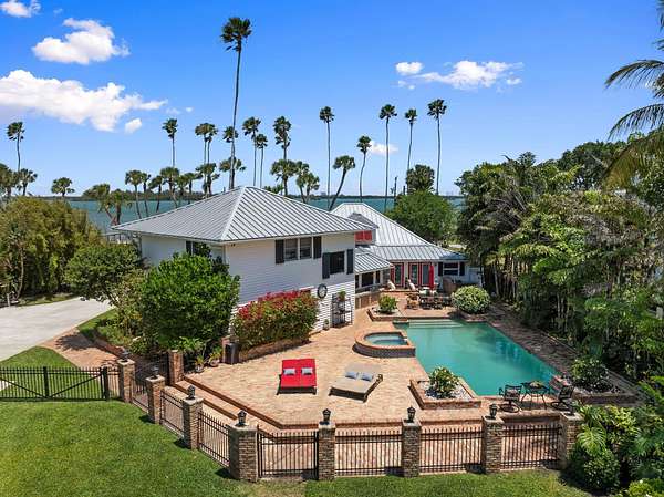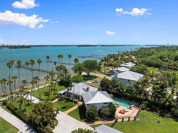 Experience the ultimate in coastal luxury with this rare open-water estate set on approximately 3.5 acres of impeccably manicured grounds in prestigious St. Lucie Village. The main residence offers 5 spacious bedrooms and 2.5 baths, perfectly blending elegance and comfort. Enjoy breathtaking water views and year-round relaxation with a resort-style pool, expansive outdoor living spaces, private dockage, and a boat lift--ideal for boating enthusiasts. A charming 1-bedroom, 1-bath cottage provides ideal guest accommodations or a private retreat. This is a one-of-a-kind opportunity to own a private waterfront sanctuary. RECENT APPRAISAL supports the listed price, reflecting current market conditions.