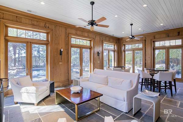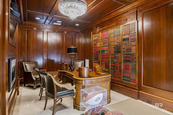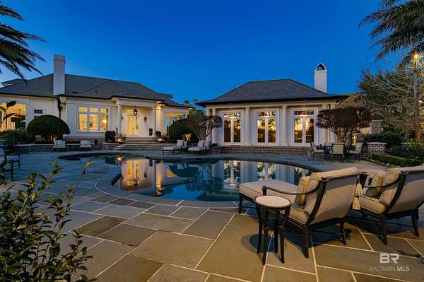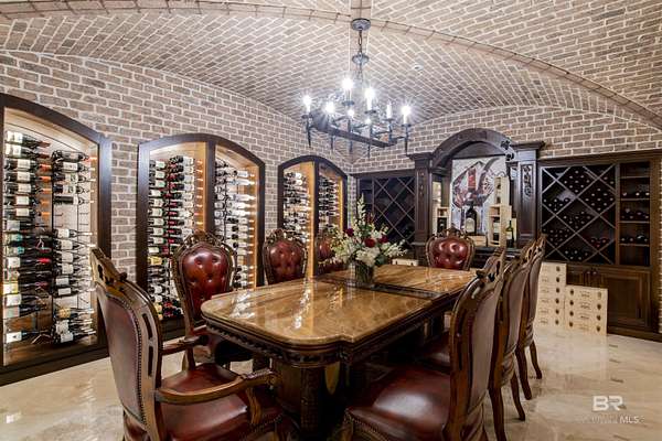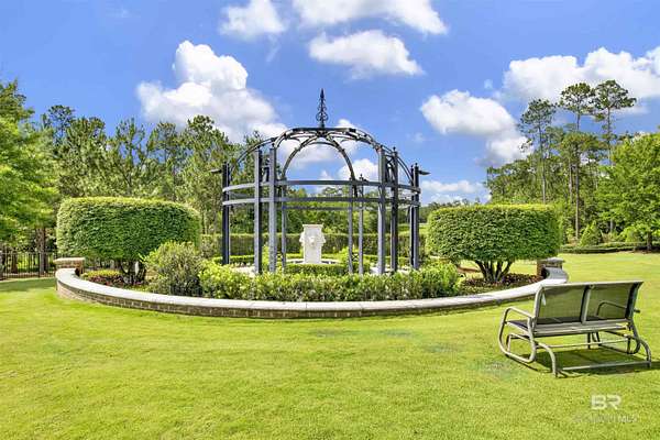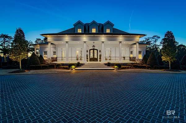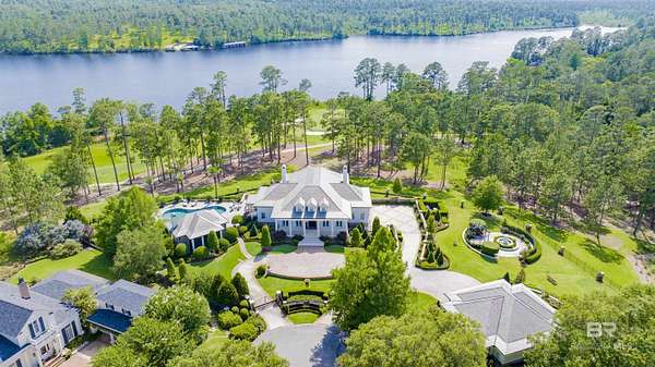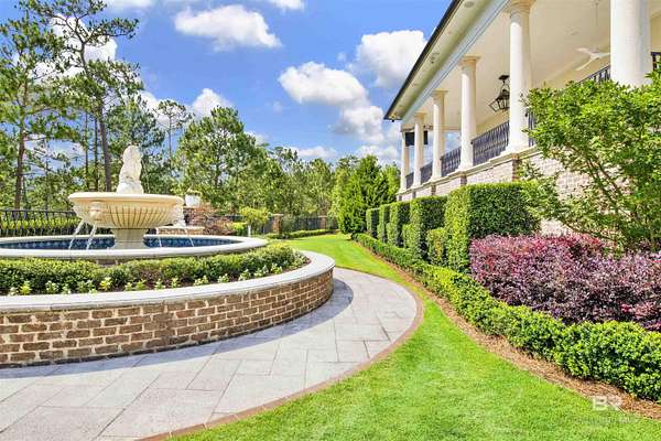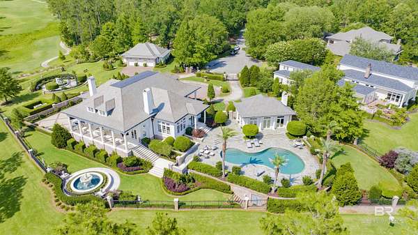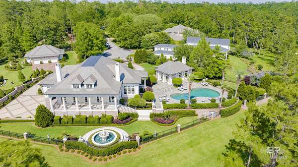 Luxury awaits in this gated Country Club community conveniently located between Pensacola, FL and Mobile, AL to the east and west along I-10, and Alabama beaches to the south and I-65 to the north. Several local airports within an hour's drive. Enjoy the clubhouse with restaurant and lounge, fishing, hunting, golf, as well as outdoor pools, exercise facilities, pro shop and a Chapel. This home is one-of-a-kind on 3 lots overlooking 4 holes of the award-winning golf course and the 200 acre Steelwood Lake. A gated circular drive to the Herringbone brick motor court is the perfect entry to this magnificent property. Completely fenced, the home, 2200 sf separate garage, and pool house offer one's own private resort. Step inside to find pure elegance with two toned marble floors throughout the main level and oak flooring in third level bedrooms. Kitchen features WOLF and Subzero appliances and a double island. The open concept is perfect for entertaining on a grand scale! In the master suite find His and Hers closets through a stunning bathroom with all the natural light. Enjoy heated floors and even a TV in the vanity mirror while you soak in the jetted tub overlooking the course and lake. Follow the marble steps and custom iron railing downstairs to the Sports Club, Wine Cellar, and Humidor to make the ultimate impression on your guests. The guest suite, office, and laundry facility can be found on the ground level just steps from the 3 car and 2 golfcart garage with 3 walk-in storage closets. On the 3rd level, 4 bedrooms and 3 baths offer a quiet escape for children and guests to rest. The pool deck and pool house are ideal for enjoying the abundance of warm, sunny days in South Alabama. Spend the evenings strolling the grounds in awe of the two fountains and elevated views of the golf course and sunsets over the lake. Whether for a weekend or a lifetime this is a magical place to unwind and recharge! Buyer to verify all information during due diligence.