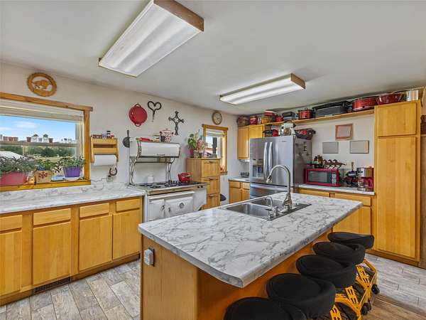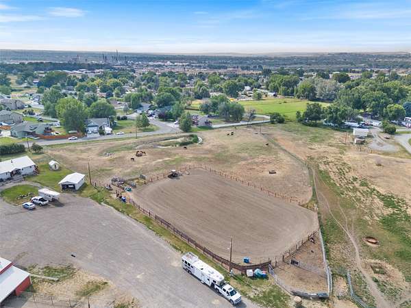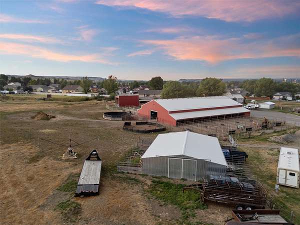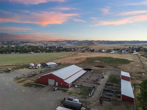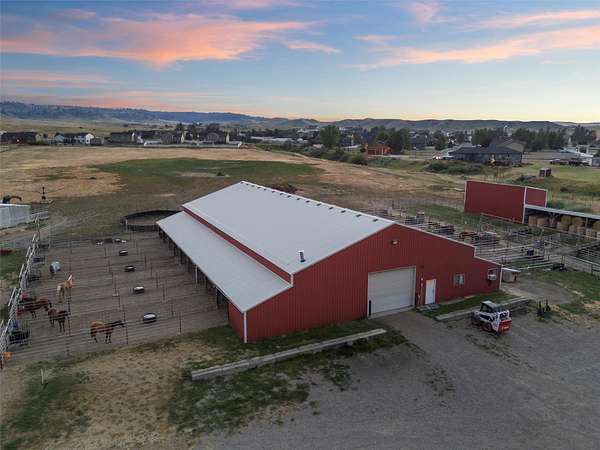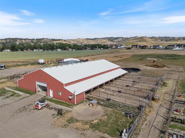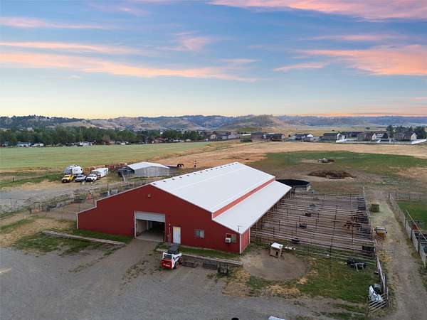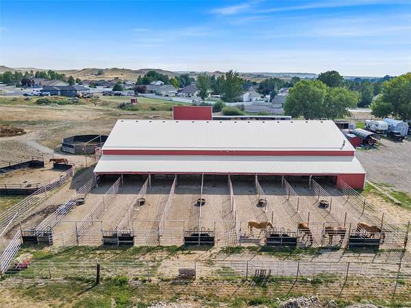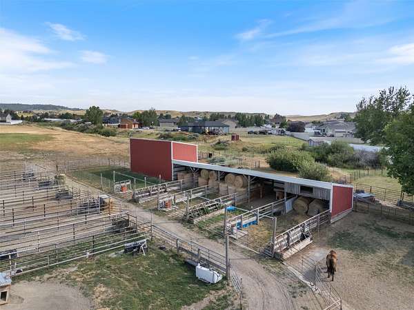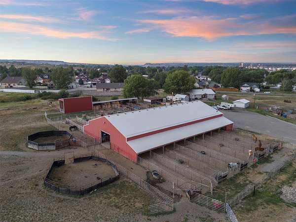 The Equine Motel at Box T Ranch is a thriving business + turnkey horse facility situated on 12.94 acres in the heart of Billings with two living quarters. This exceptional property has a history of hosting world champions. With its meticulous design, emphasis on safety, and proximity to the Billings Livestock Commission, this is the perfect spot for horse enthusiasts and professionals alike. The main home is +/-3022 sqft and features 5-bed/3.5 bath + office. It's equipped with a geothermal heating/cooling source, and is on city water + private septic system. The 120x94 barn offers ample space for horses, gear + equipment with an enclosed shop + tack room, 16-12X20 indoor stalls and 18-12X60 outdoor runs. The stalls are complete with shelter + automatic waterers supplied by a 14-gpm private well. The attached 1 bed/1 bath apartment is presently used as an AIRBNB for overnight guests. The 36x48 mare motel consists of 5 indoor stalls + 3 stalls w/ runs. The outdoor arena has a roping chute, sweep tub, run back alley + catch pens. Additional amenities include 2 round pens, several additional safe pens + pastures, 120x20 hay barn, detached garage, storage sheds, pond, greenhouse, 5-30 amp LQ plug ins, and a prepared mobile home pad with water and power. The possibilities are endless for this premier Billings location, prime for continued business use, or development for storage units, suburban subdivision, etc. Don't miss this rare opportunity to own a world-class equestrian facility in the heart of Montana.