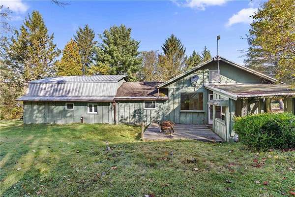 Year-round home or weekend getaway on over 4 private acres in the scenic Finger Lakes region. This cabin, originally a log home with a later addition, is ready for your vision and updates. Features include cherry floors in the living room, a den with wood stove, and a primary bedroom with its own bath. 2nd floor bedroom using pull-down staircase. The peaceful setting includes mature trees, a small pond, and a shed in need of repair. Two-car detached garage offers plenty of storage. Close to High Tor State Land, the West River boat launch, wine trails, golf, and the charming village of Naples. Come explore your options!