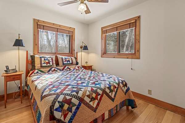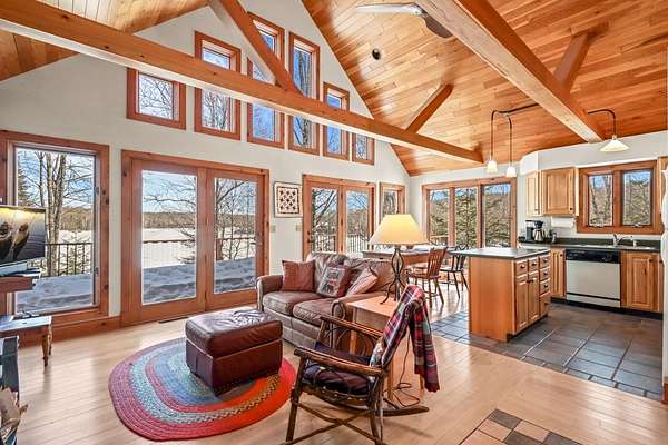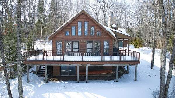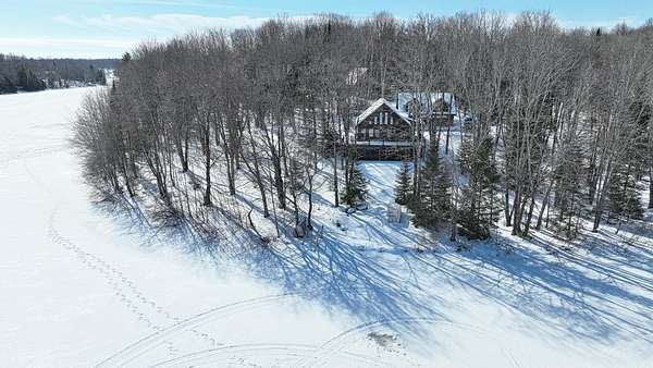 Spectacular on Spectacle Lake! This rare 2.09-acre retreat features 2 bedrooms, 1 bath, and 250 feet of stunning frontage on some of the most crystal-clear water in the Northwoods. The beautifully enhanced yard shows thoughtful, professional landscaping, including stone pavers that lead you through the natural beauty of the lakefront. Craftsmanship shining through with hickory floors and cabinets. Cedar-wrapped beams and ceilings create a timeless, natural atmosphere whether you are waking up in the large loft with the morning sun streaming in or enjoying your first cup of coffee on the deck. The open layout ensures you never lose sight of the surroundings, offering an incredible view of the water from the kitchen and living room spanning nearly 180 degrees. Plenty of space in the 2-car garage, which includes extra storage in the upstairs area for all your gear or hobbies. This home is a rare find for anyone seeking a quiet waterfront lifestyle.
