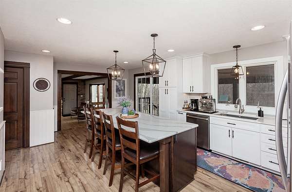 Beautiful and secluded acreage in the heart of Waukee, offering an incredible location near schools and the Jordan Creek area. This home is perfect for family living, featuring five bedrooms and three updated bathrooms. The fully remodeled kitchen boasts a stunning island and updated appliances, ideal for everyday living and entertaining. Enjoy evenings dining outdoors on the screened-in patio. Upstairs, the primary suite has been completely remodeled and includes a walk-in closet, double vanity, and a beautiful shower. Upstairs laundry and exercise room for convenience. The four-car garage provides ample space for vehicles, storage, wired for an EV charger is set up for all your outdoor adventures. Don't miss the opportunity to see this truly special property!