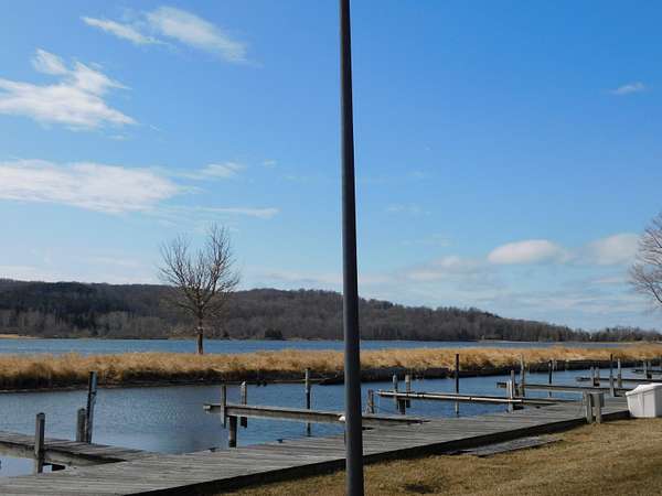 Lake Front community living with low expense on beautiful Lake Arcadia with access to Lake Michigan. Beautiful views of the water in this small private community with park like settings. This lot includes the access to the community center with entertaining area and a tennis court! Lakeside Marina on the end of the subdivision and the beautiful Arcadia March Nature Preserve just across the highway. Home site is half a block from Marina boat docks that offer better water views of the channel in this community. Boat slip Available. Where other affordable community would you have access to waterways of the Great Lakes. New member admission fee $1500.