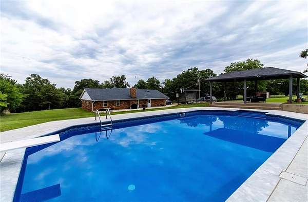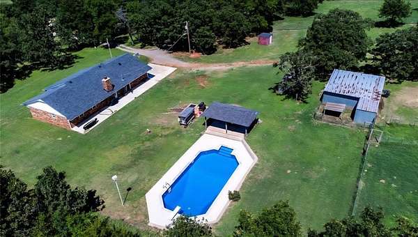 Wellston, OK ~ Just off Historic Route 66 this 25+ acre farmstead ready for your livestock, equipment, and family offers the perfect blend of country living and modern updates ready for your livestock, equipment, and family. The 3 bed, 2 bath home features updated kitchen and bathrooms, an extended laundry with mud sink, and a 2-car garage. Outside find needs for work, play, and relaxation: livestock-ready pastures, pens, chutes, a double loafing shed, multiple domed animal shelters, and three ponds for reliable water. A 24x40 metal shop with 12x24 overhang and concrete floor is plumbed for a kitchen and bathroom and includes an overhead truck door making it perfect for projects, equipment storage, or an additional living unit. Add a classic barn, double loafing shed, a sparkling inground pool with gazebo, and an underground storm cellar for utility, fun, and peace of mind after farm chores are complete. Ideal for a working farm, hobby farm, or FFA projects, with plenty of room to grow. MOTIVATED SELLERS have already done the hard work of opening up the land by removing cedars, leaving wide-open spaces dotted with heritage trees.