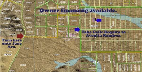 Stockton Hill Rd to Jane, go east to Cherum, north to Calle Bequita, east to Avenida Ramirez, north to lot. Map is in photos. Use caution on dirt roads.