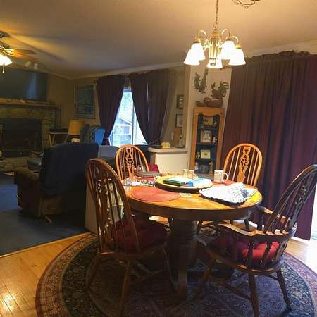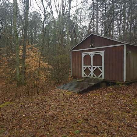 Set on nearly 7 wooded acres at the end of a quiet road that leads to Stamp Creek, this spacious 4-bedroom, 2.5-bath home offers privacy, room to roam, and a layout designed for comfortable everyday living. A horseshoe driveway welcomes you to the property, with the home tucked back from the road for added seclusion. Inside, the mudroom serves as a practical entry point, complete with laundry and a convenient half bath. From there, you step into a warm den anchored by a real wood-burning fireplace an inviting space to gather and unwind. The den flows naturally into the kitchen's eat-in area, which opens to the formal dining room and continues into the formal living room, creating a connected yet distinct layout perfect for hosting or spreading out. On one side of the home, you'll find three well-sized bedrooms and a full bath. On the opposite wing, the private primary suite offers its own retreat, complete with an en suite bath and a generous sitting room. Previously used as a sewing room, this versatile space features built-in bookcases that will remain with the home, making it ideal for a home office, library, or hobby area. Outdoors, the wooded acreage provides both beauty and opportunity. In addition to the attached driveway, the property includes a detached two-car garage with loft storage above and a separate building that was formerly used as a workshop perfect for projects, storage, or creative pursuits. With land, space, and a peaceful setting just minutes from nature, this property offers the chance to enjoy country living with room to make it your own.