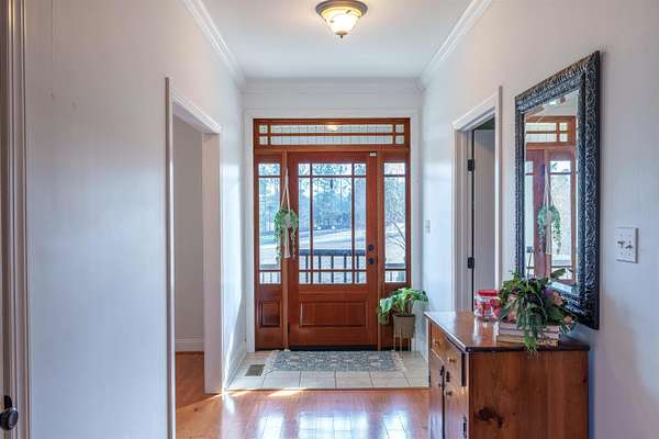 Nestled on 10.67 beautiful acres, this two story craftsman style home with a basement offers the perfect blend of privacy, functionality and timeless charm. Enjoy a view from the balcony overlooking rolling picturesque land ideal for peaceful living, farm animals or outdoor recreation. The main level features a spacious master bedroom with a master bath, an additional bathroom and another bedroom/office. Main level also has a sunroom off the living room with a beautiful view. Upstairs you will find two bedrooms, a full bath and a large bonus room. The basement expands the homes versitality with a second living area and an additonal room with a safe room. Basement also has a bathroom and a 2 car garage. There is a large partially enclosed pole barn with a small catch pen off the back. With expansive acreage, beautiful views, and flexible living spaces across 3 levels, this property offers a rare opportunity to enjoy country living. Call today! All info to be verified by the buyers.