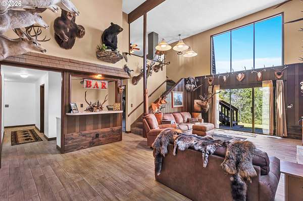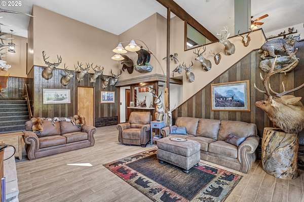 Beautifully refinished home on 5 acres off desired Fisher Rd. area. This home has room for it all, and views all around. With 6 bedrooms, an office, living room and family room, there is no shortage of space and storage. There are 3 bedrooms upstairs, and 3 bedrooms and an office downstairs. The living room boasts 18' ceilings, a floor to ceiling fireplace, and a wet bar. The kitchen/dining room has a covered deck with an eagles view of Fisher Rd. Outdoors there is a detached garage with workshop, room for an RV, boat, toys, garden area, and fenced area currently used for goats. There is so much to see, you have to do it in person. Call for a tour today.