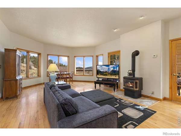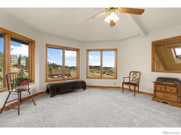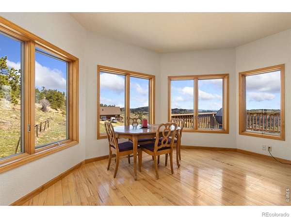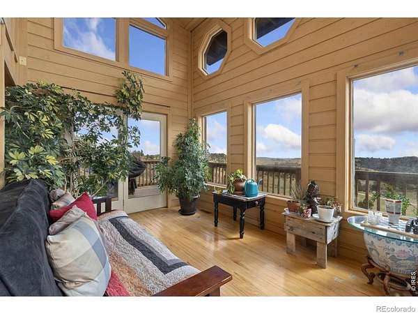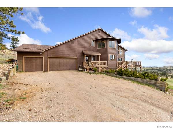 Discover the ultimate Colorado retreat on this sprawling 5.8 acre lot, located just 30 minutes from the heart of Fort Collins and a quick drive to Red Feather Lakes! Zoned for horses, this beautiful property is ready for its next owner. Enjoy over 3,200 sq. ft. of living space in this mountain home that perfectly captures the balance of modern convenience and natural escape. The main level is the heart of the home, featuring an open concept kitchen complete with maple cabinetry, a center island, and expansive windows. Two separate doors lead from the kitchen into a spectacular sunroom with soaring ceilings and venting skylights that invite the mountain breeze inside. Nearby, a sun-drenched dining nook, a cozy fireplace in the living room, and a convenient laundry room complete the main living area. Retreat upstairs to the primary suite, where you'll be welcomed by more beautiful views, a private bath, and a walk-in closet. Another bedroom and guest bath round out this level. Downstairs, the walkout basement offers even more flexibility with a large family room, another bedroom, and a second sunroom. Outside, the massive wraparound decks offer front row seats to our incredible Colorado sky. In addition, this property offers an oversized 3-car attached garage for all your gear and toys! With professional fire mitigation completed in January 2025, this home is as secure as it is beautiful.