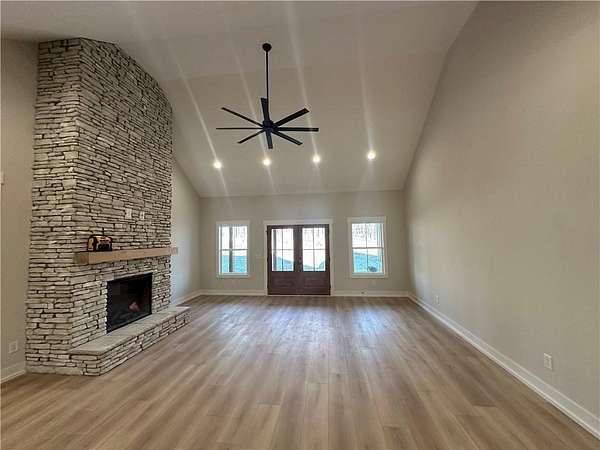 Gorgeous new construction home situated on over 3 acres. The main areas feature LVP flooring for a stylish and durable finish, while the custom cabinets and granite countertops in the kitchen add a touch of luxury. The kitchen also boasts a large center island and a spacious walk-in pantry, while seamlessly connecting to the great room with an electric fireplace. Enjoy the covered back porch, which includes its own cozy fireplace, perfect for outdoor relaxation and entertaining. The master suite offers a private retreat with dual vanities, a walk-in shower, separate soaking tub, and a walk-in closet which conveniently connects to the laundry room. Two additional bedrooms share a practical Jack and Jill bathroom, making it ideal for family living. Built with attention to detail, this home features spray foam insulation, and hardiplank ensuring both quality and efficiency.