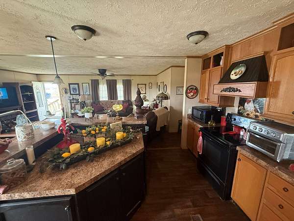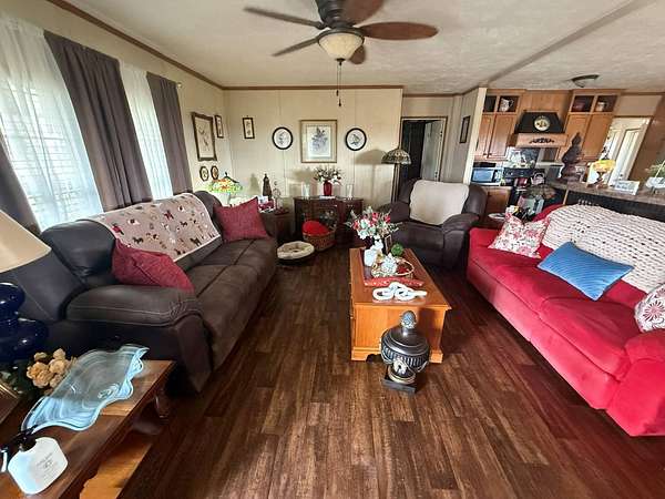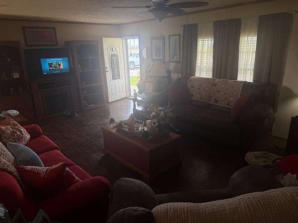 Est $1,317/mo3 miles south of town, this beautiful, extra spacious 2014 double wide on a fixed foundation comes with 4 bedroom 2 bath on 2.83 acres. Fenced in back yard, with a large garage/ shop for any purpose you have.