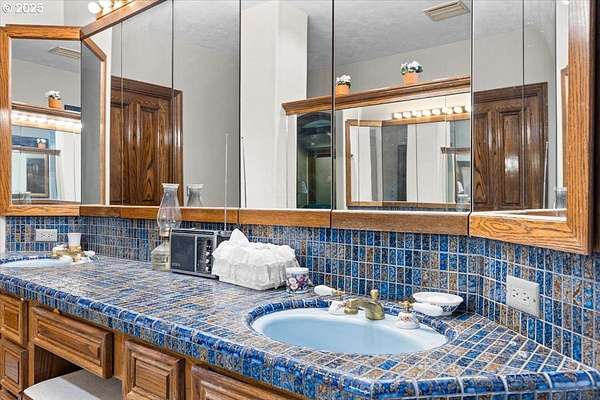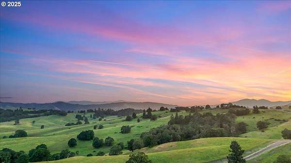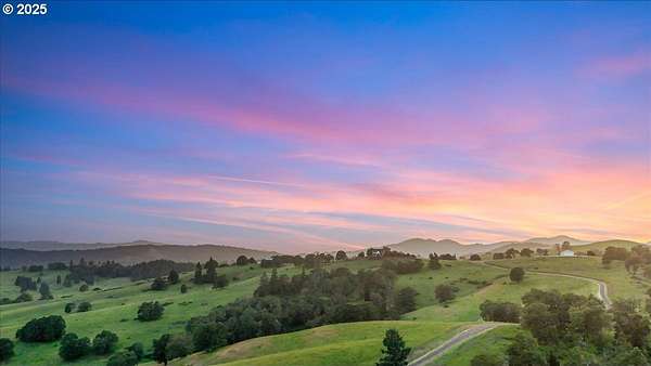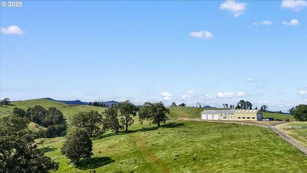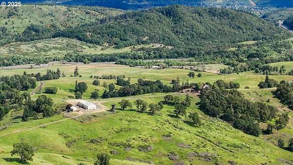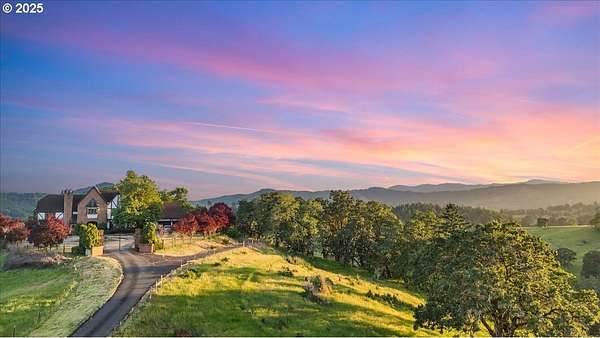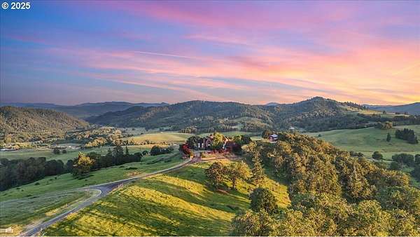 Nestled in Oregon's scenic Umpqua Valley, this extraordinary 2,670-acre ranch offers a rare blend of luxury, tranquility, & commercial potential. Atop a prominent knoll stands a grand 7,936-sqft Tudor-style mansion that commands sweeping 360-degree views of rolling pasture, woodlands, & distant hills. The home's 3-levels are a testament to craftsmanship & attention to detail featuring 5 spacious bedrooms, 4 full bathrooms, 2 powder rooms, custom millwork, stained-glass accents, chandeliers, & multiple fireplaces for an atmosphere of timeless elegance. Seeking a quiet reading space? Step into the charming, castle-like library. The rolling ladder & private balcony enhances its storybook feel. The basement is a haven for wellness. It features a hot tub, tanning bed, sauna & steam room, & fully equipped exercise room. Prefer a drink? Head to the full bar or select a bottle from the wine cellar. The kitchen offers style & functionality with a built-in Sub-Zero refrigerator, custom copper range hood, ample workspace, & storage. Currently operating as a working cattle ranch, the property includes a general-purpose building with a Helicopter hangar & landing pad, caretaker's apartment, meat-processing room, & workshop. A state-registered, one-mile private airstrip caters to aviation needs with potential for further development. Conveniently located along Interstate 5 & close to Historic Oakland. Heaven's Gate Ranch is fully approved by the county for destination resort development with civil engineering, site maps, & utility designs already completed. The new owner will receive comprehensive documentation including plans for a 100-room hotel, restaurant, convention center, & 200-lot residential subdivision-providing an advantage for streamlined development & customization. These approvals & plans save years of work & expense. Heaven's Gate Ranch marries majestic living with the rare potential to craft a world-class destination resort. It is a once-in-a-lifetime opportunity.