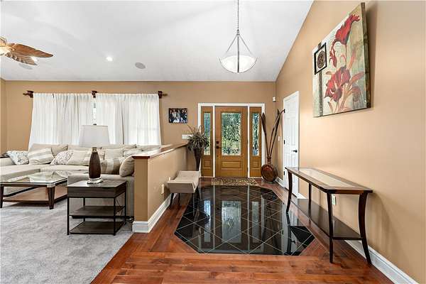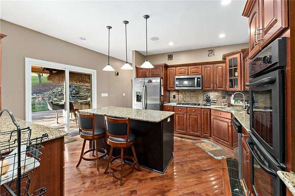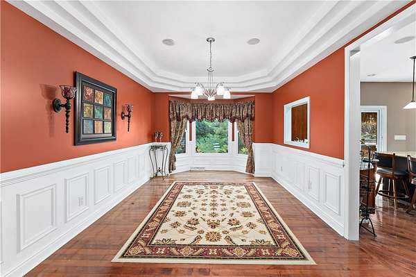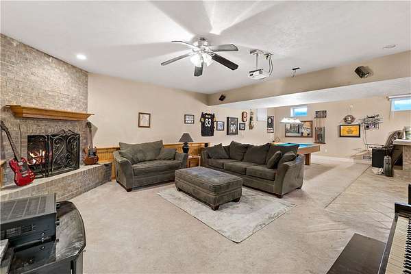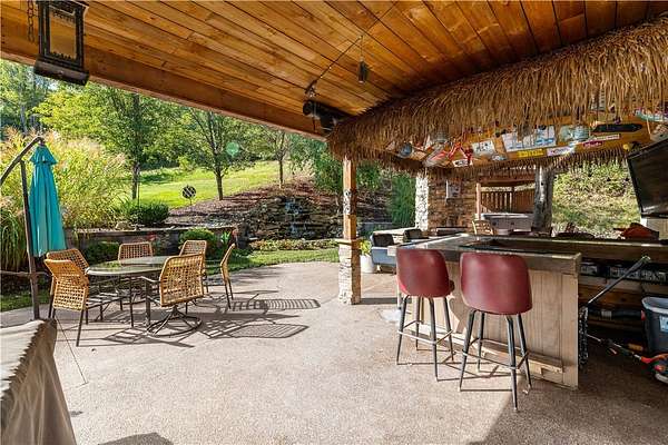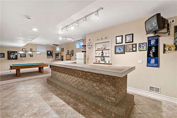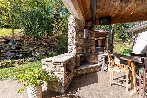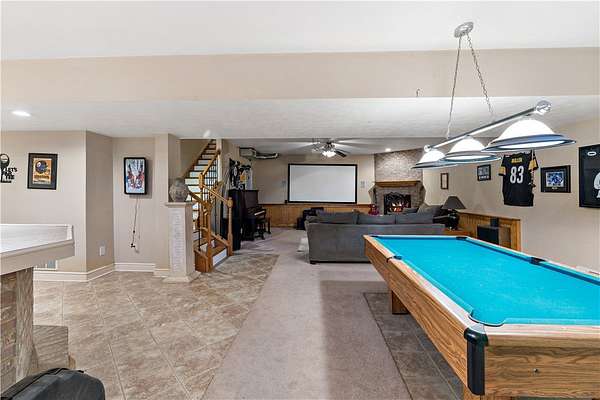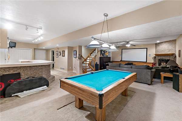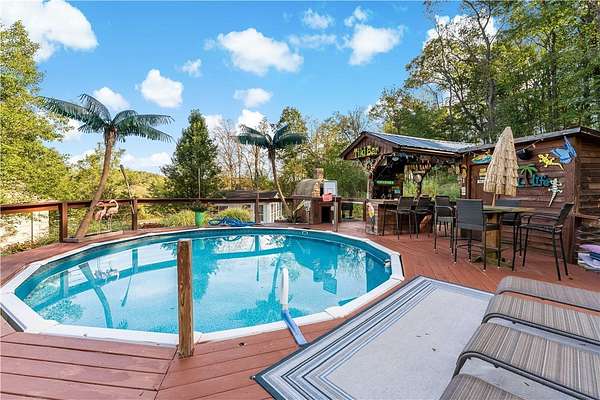 Rare opportunity in North Fayette! This custom ranch home sits on 1.87 acres of usable and private land. Offering four bedrooms, detached garage w/office or guest space and an impressive custom backyard retreat. Enjoy vaulted ceilings in the spacious living room w/fireplace and formal dining room w/trey ceilings that opens to a large kitchen. Primary suite features a beautifully remodeled bathroom w/white heated tile floors, soaking tub with a view, walk-in shower and walk-in closet w/laundry for ultimate convenience. Three additional bedrooms include one w/ensuite bath, plus a remodeled full bath w/custom wood vanity and tile detailing. The finished lower level offers a home theatre, bar, full bath, and pool table area! Step outside to your resort-style backyard with a hot tub, above-ground pool with deck, tiki bar with pizza oven and half bath, outdoor fireplace, waterfall, and fire pit. Prime location close to Robinson Town Centre, local shopping & dining, the airport, schools.