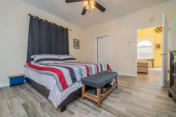 - Blinds/Shades, Ceiling Fan, Raised Ceiling
