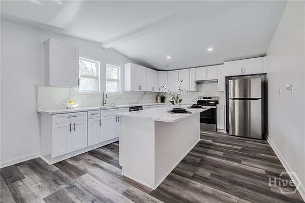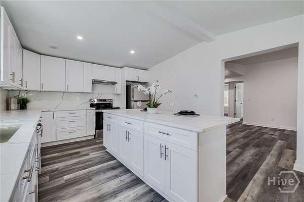 Private, gated retreat on 3.3 acres-completely redone and move-in ready! This beautifully updated 3-bedroom, 2-bath home offers the perfect blend of peaceful country living with convenient access to everything you need. From the moment you arrive, you'll love the privacy and space, complete with a gated entrance, a small fishing pond, and plenty of room to spread out. Enjoy true Lowcountry living with two massive porches-one in the front and one in the back-perfect for morning coffee, evening sunsets, or entertaining guests. Inside, the home has been thoughtfully renovated with LVP flooring throughout for durability and style. The kitchen is a standout, featuring granite countertops, a matching granite backsplash, stainless steel appliances, new soft-close cabinetry, and a sleek vent hood-designed for both function and style. The spacious primary suite offers a large bathroom and a walk-in closet, creating a comfortable and private retreat. Two additional bedrooms provide flexibility for guests, a home office, or growing needs. Outside, you'll find a carport and storage shed, adding even more functionality to this versatile property. Located just 8 minutes from the Hyundai plant, 20 minutes to Pooler for shopping, dining, and entertainment, and 30 minutes to Statesboro-this home offers the perfect balance of quiet living with a quick commute. Opportunities like this don't come around often-privacy, acreage, updates, and location all in one!