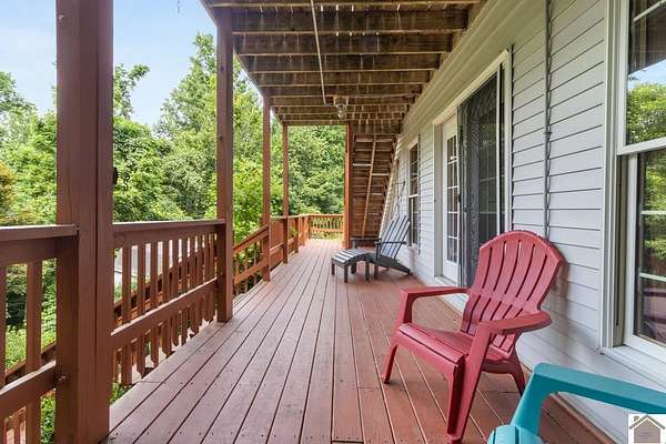 Welcome to your dream lakefront property! This stunning 5 bed, 3 bath home boasts 2518 square feet on 4.57 acres. Step inside to find a spacious living room, complete with a fireplace and balcony overlooking the water. A kitchen on both the main level and lower level make for easy entertaining. Enjoy the convenience of a bathroom on each level and a walkout basement with steps leading to the large deck and private dock. An attached 2 car garage will hold all of your lake toys. A concrete and separate gravel drive offer ample parking. A secluded setting offers the perfect escape for a vacation home, short-term rental, or year-round living. Don't miss the opportunity to own your own piece of paradise!